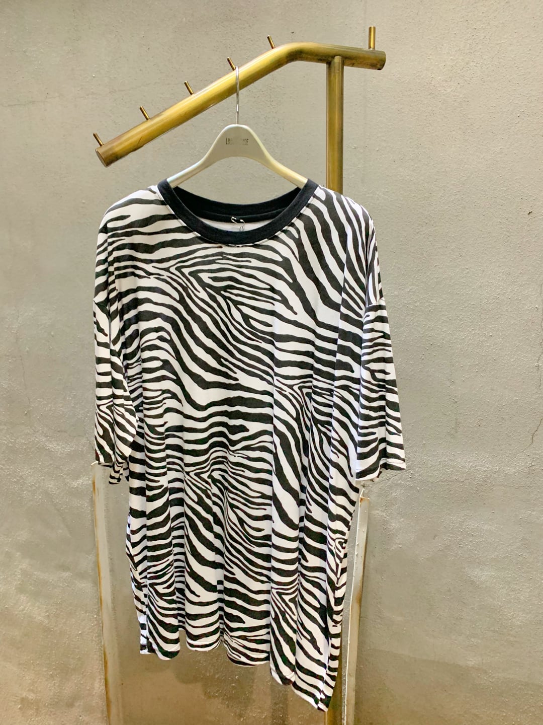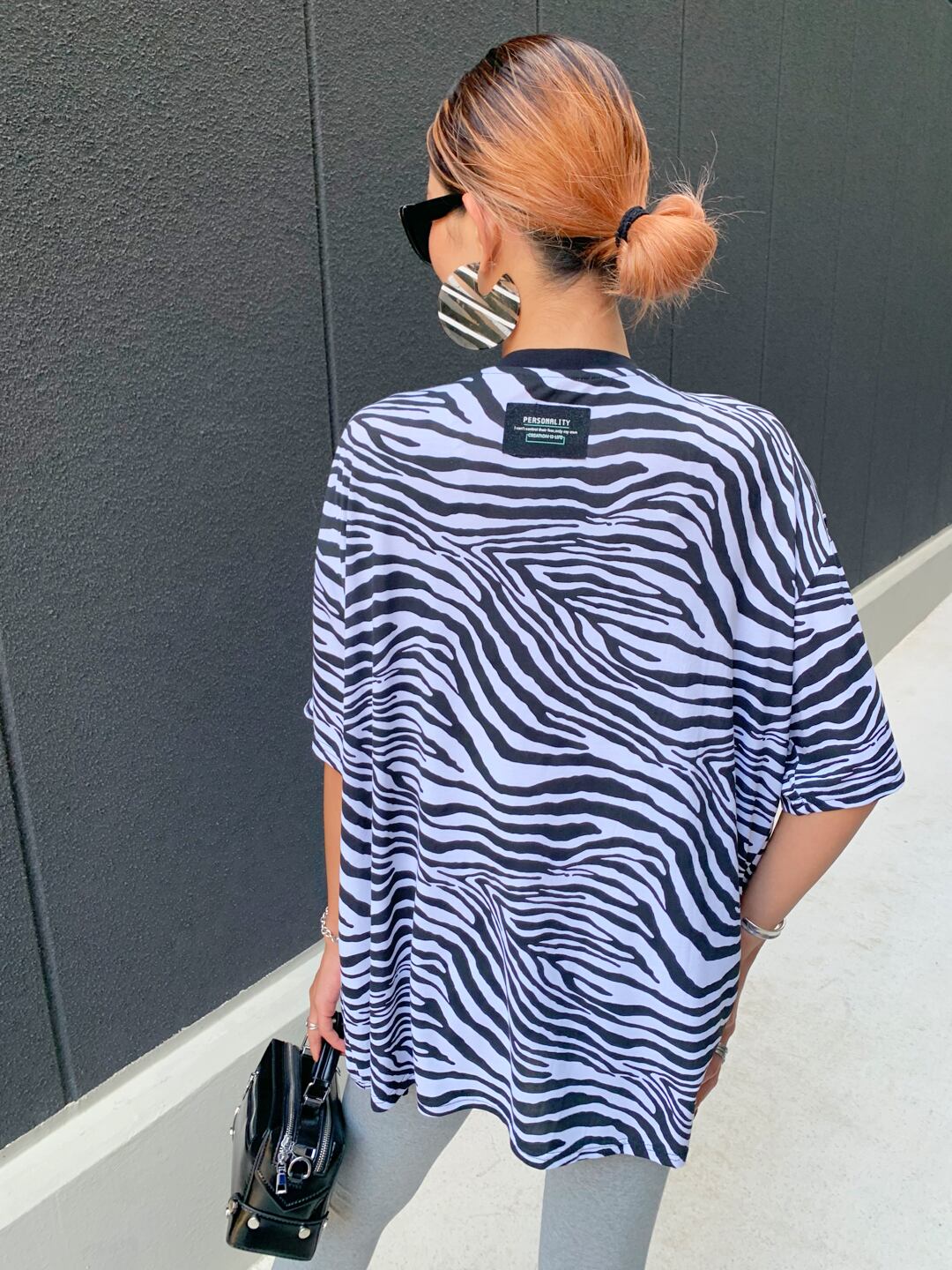 ゼブラ柄プリントのドロップショルダー・Tシャツ