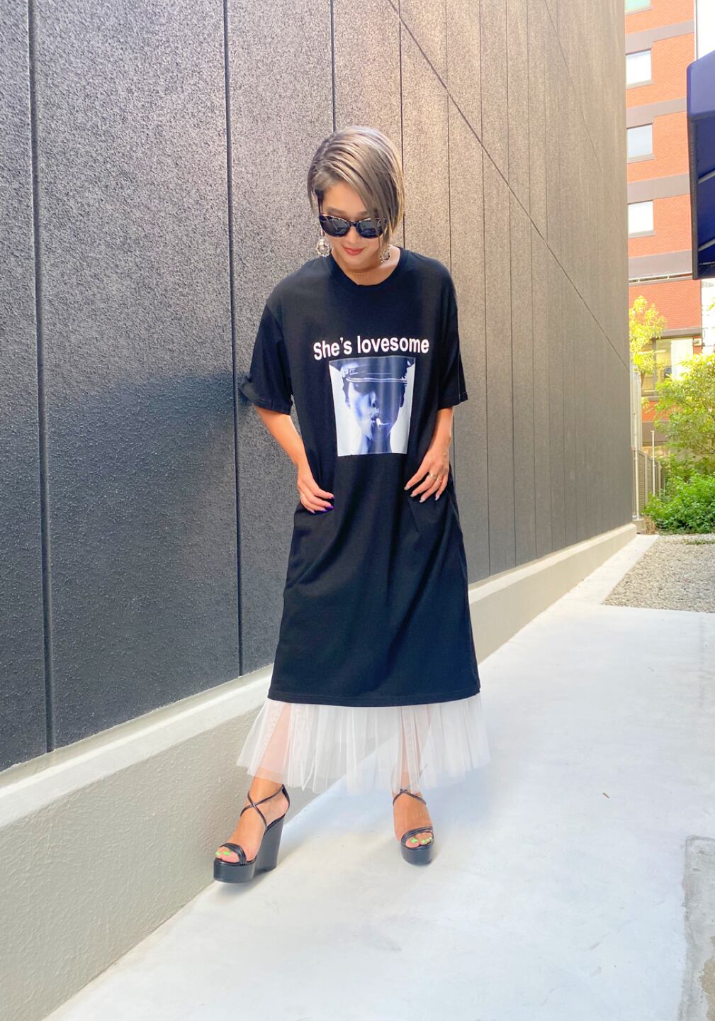 smoking lady print loose fit T one-piece ワンピース ワンピ Tワンピ Tシャツ タバコ