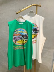 rasing car print sleeveless tops トップス タンクトップ 車 カー レース プリント バックプリント