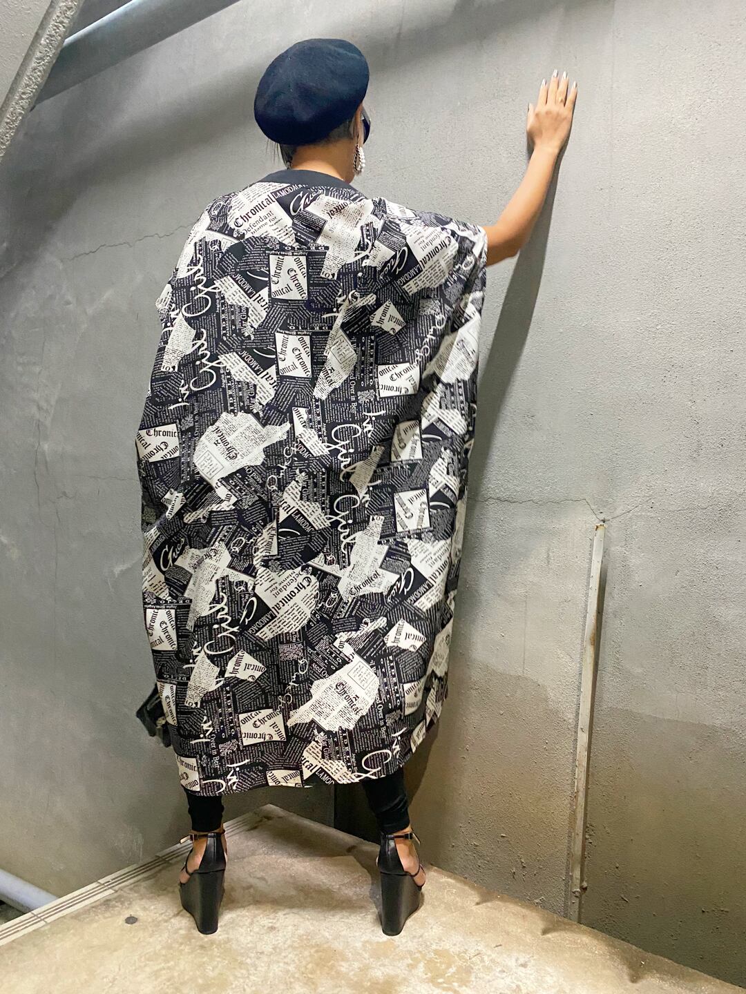 magazine print henry neck one-piece ワンピース ワンピ 柄ワンピ マガジン プリント 白黒 ゆったりめ オーバーシルエット 体型カバー
