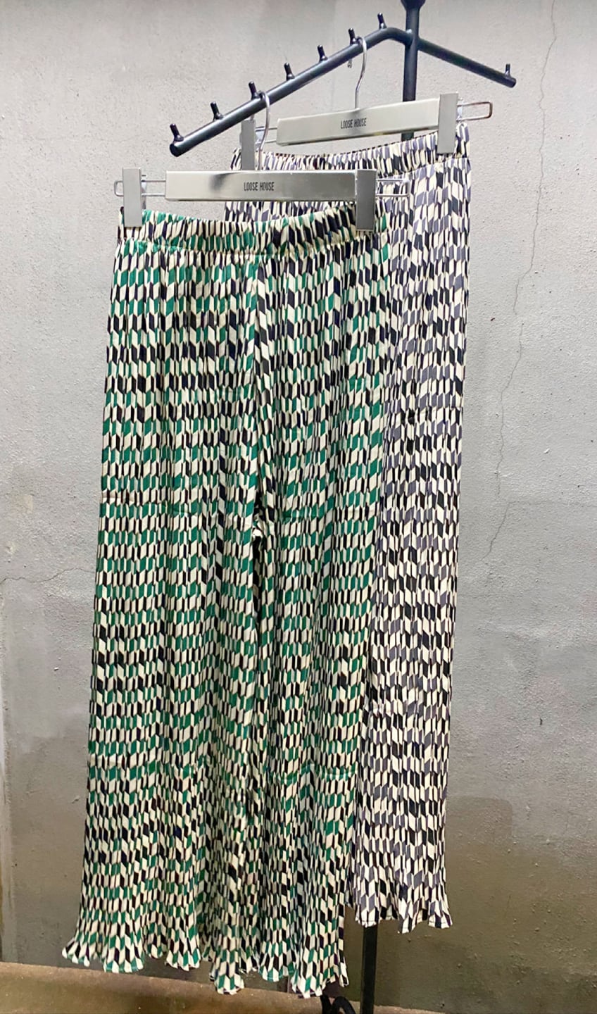 pattern print pleats long pants パターン プリント ジオメトリック 柄 ロング ワイド パンツ