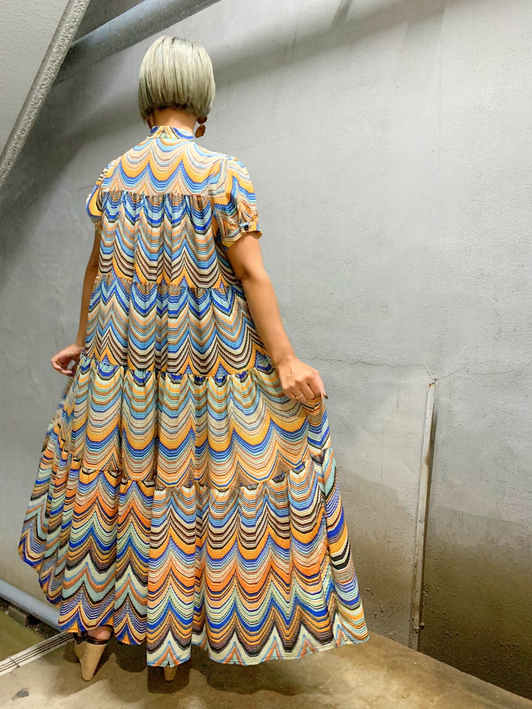 marble wave print one-piece ワンピース ワンピ 柄ワンピ カラフル ウェーブ ロングワンピ