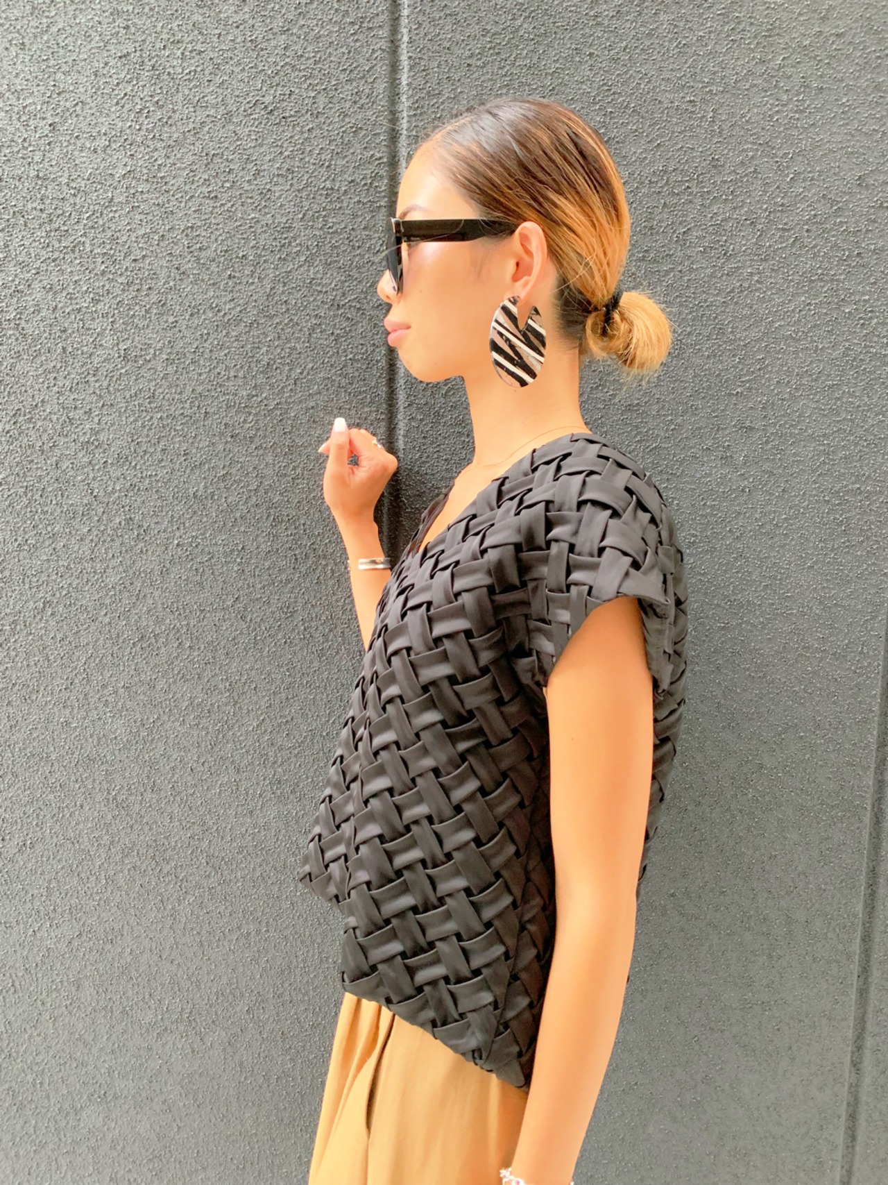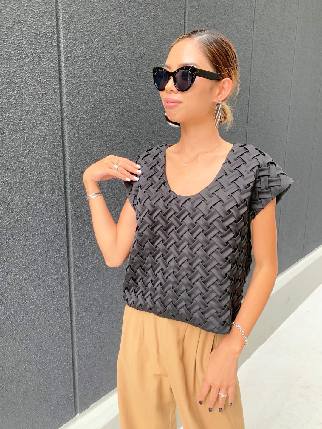 satin 3D cross sleeveless tops トップス クロス 立体的 Uネック