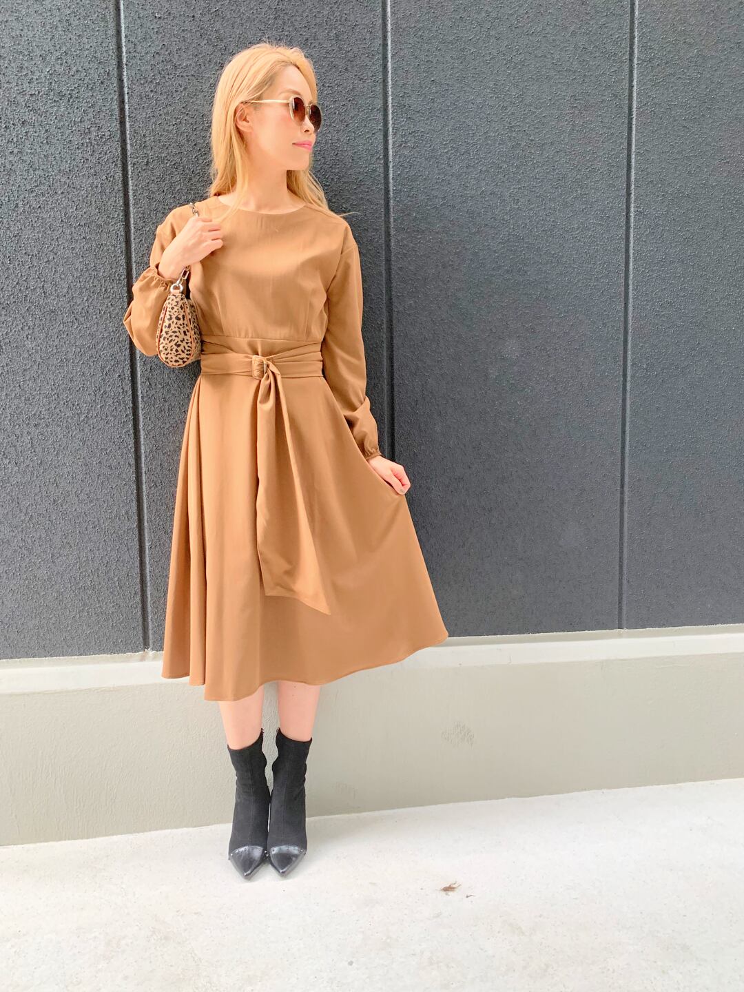 belted waist mark long sleeve one-piece ワンピース ワンピ ベルト付き ロングスリーブ 長袖 秋