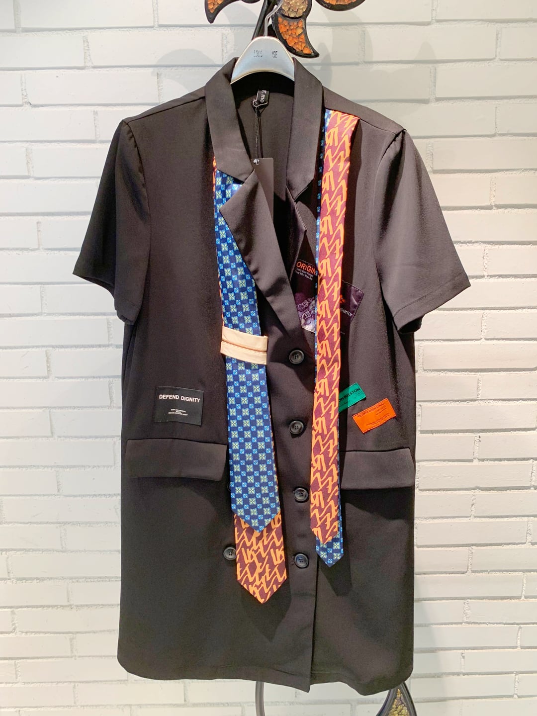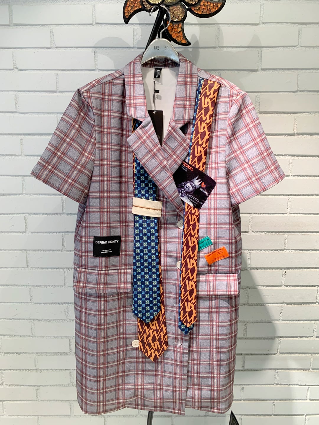 necktie design short sleeve long jacket ジャケット ロングジャケット ワンピース ネクタイ デザイン 個性的 チェック