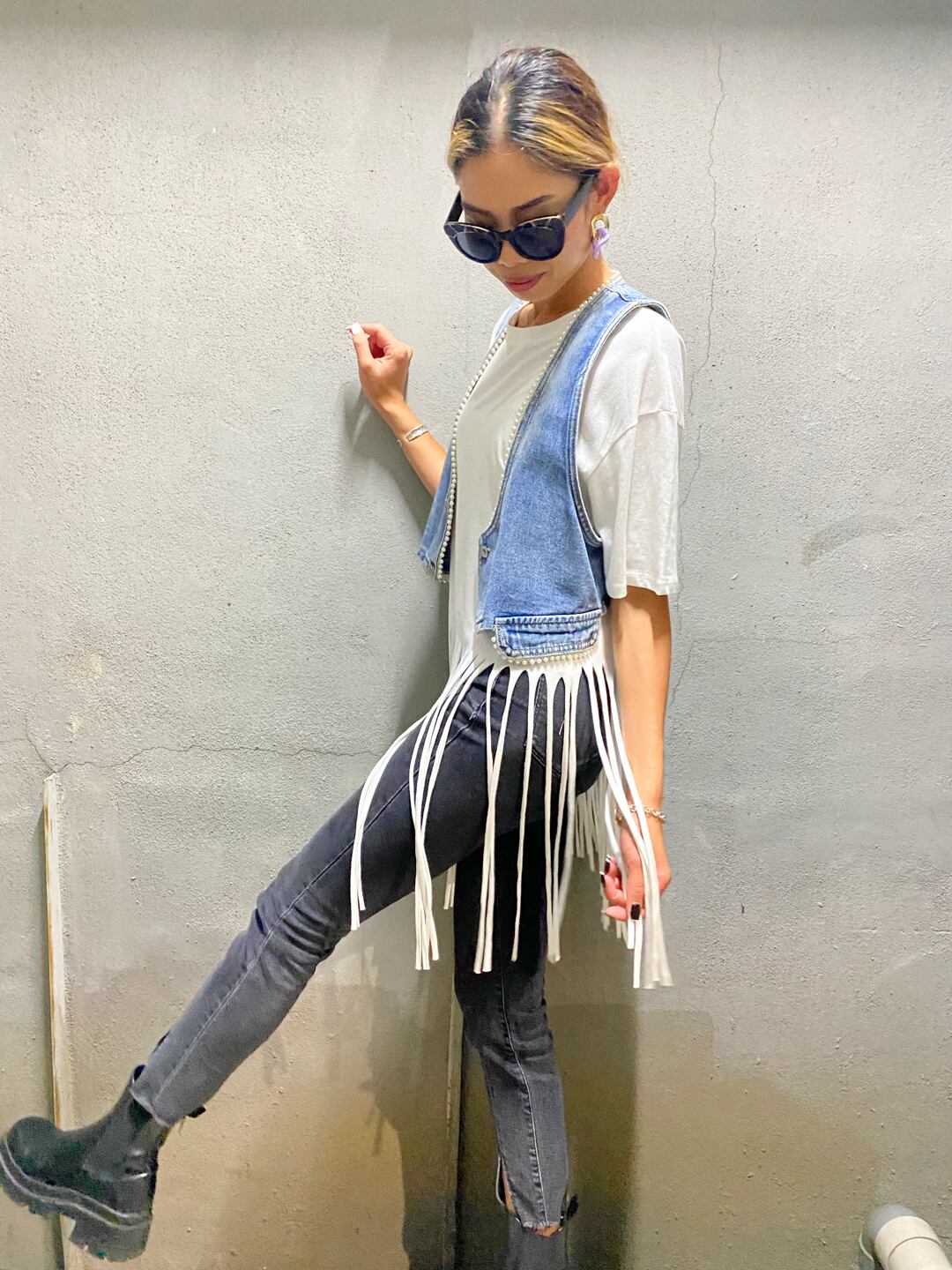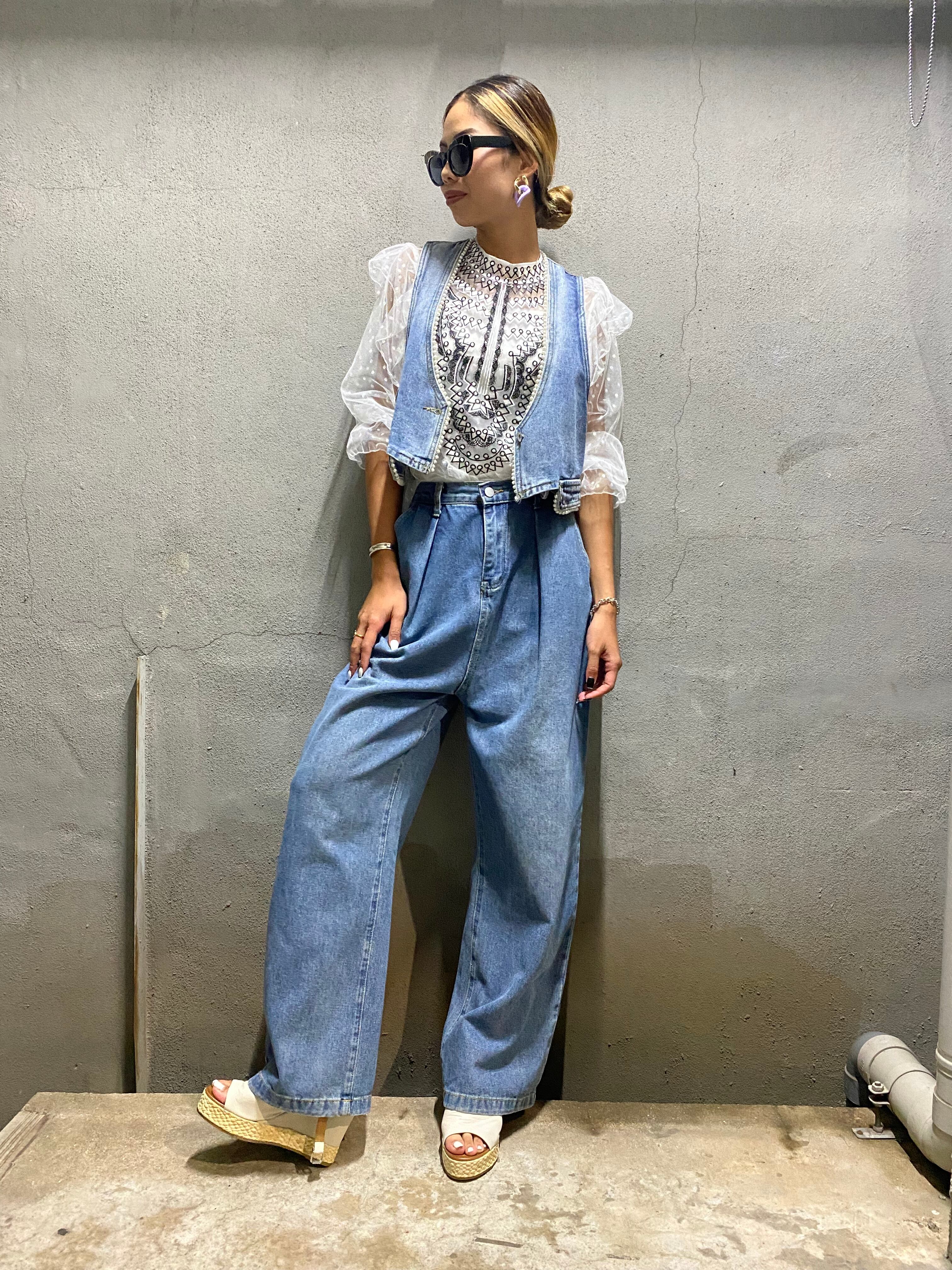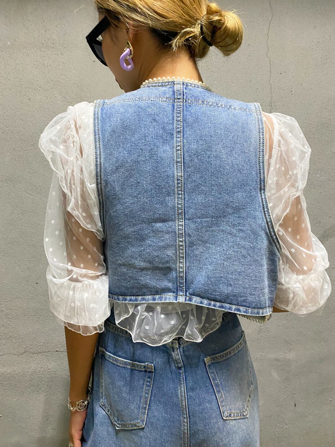 denim pearl trimming vest ベスト ジレ デニム デニムベスト パール