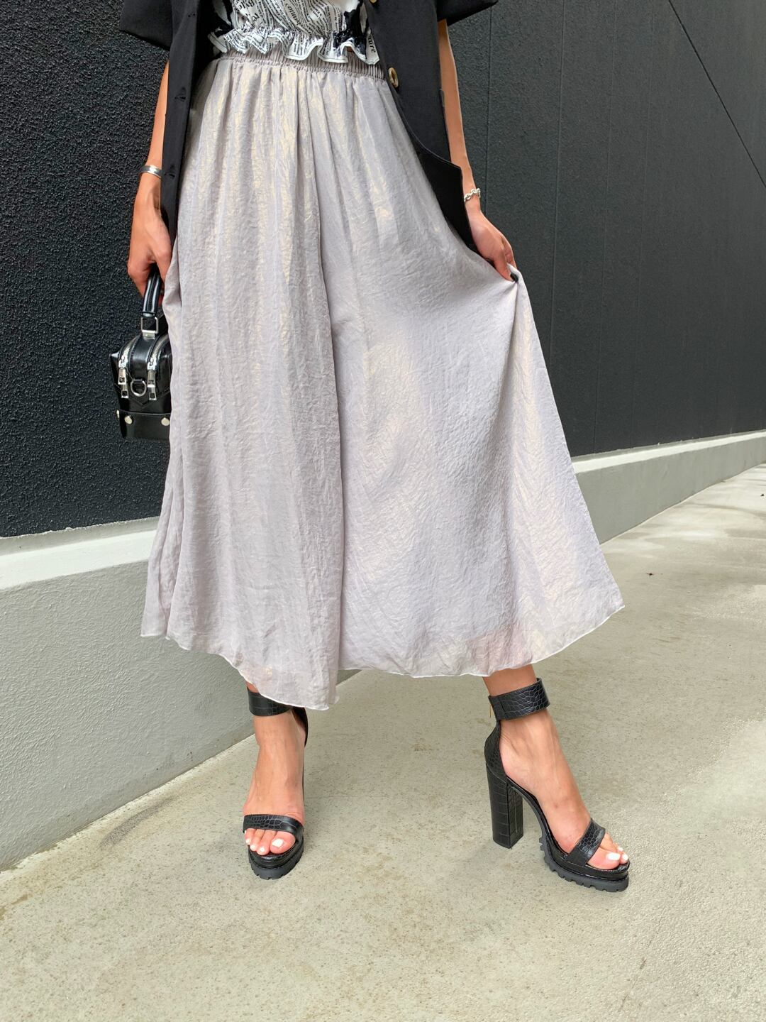 shiny chiffon gather volume widepants パンツ ワイドパンツ シャイニー シフォン ギャザー