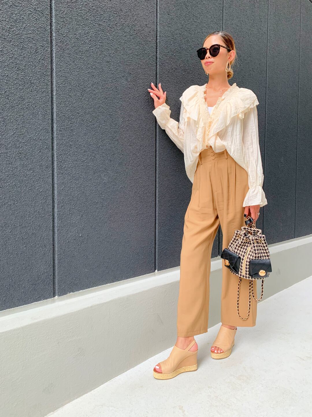crinkle shirring frill blouse ブラウス シャツ トップス クリンクル シワ加工 フリル