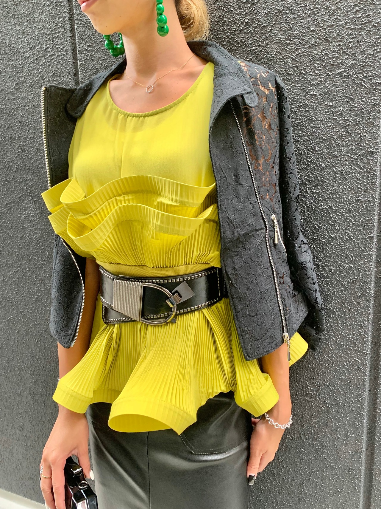 wire pleats waist mark tops トップス フリル ペプラム カラフル キレイめ 大人コーデ プリーツ