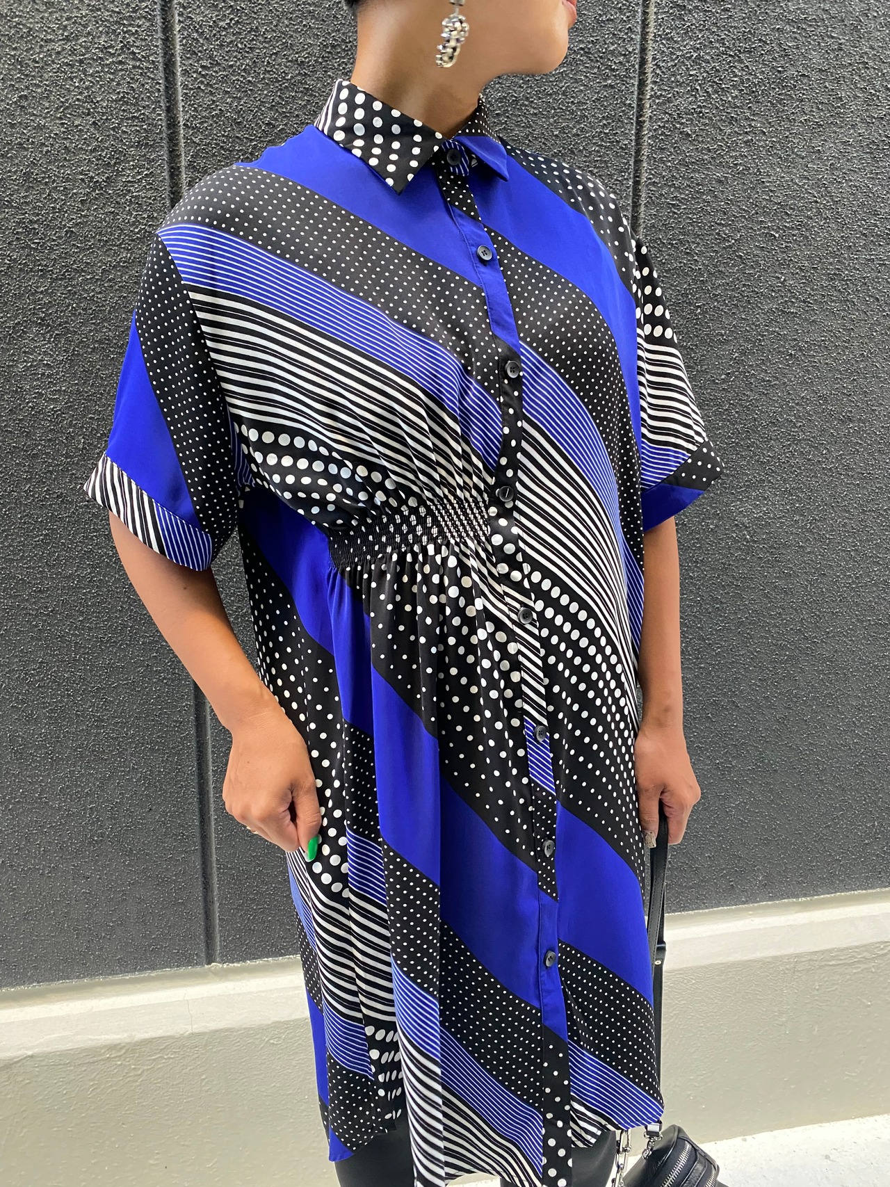 bias dot print shirt one-piece ワンピース シャツワンピ シャツ ロングシャツ ドット 柄シャツ 体型カバー