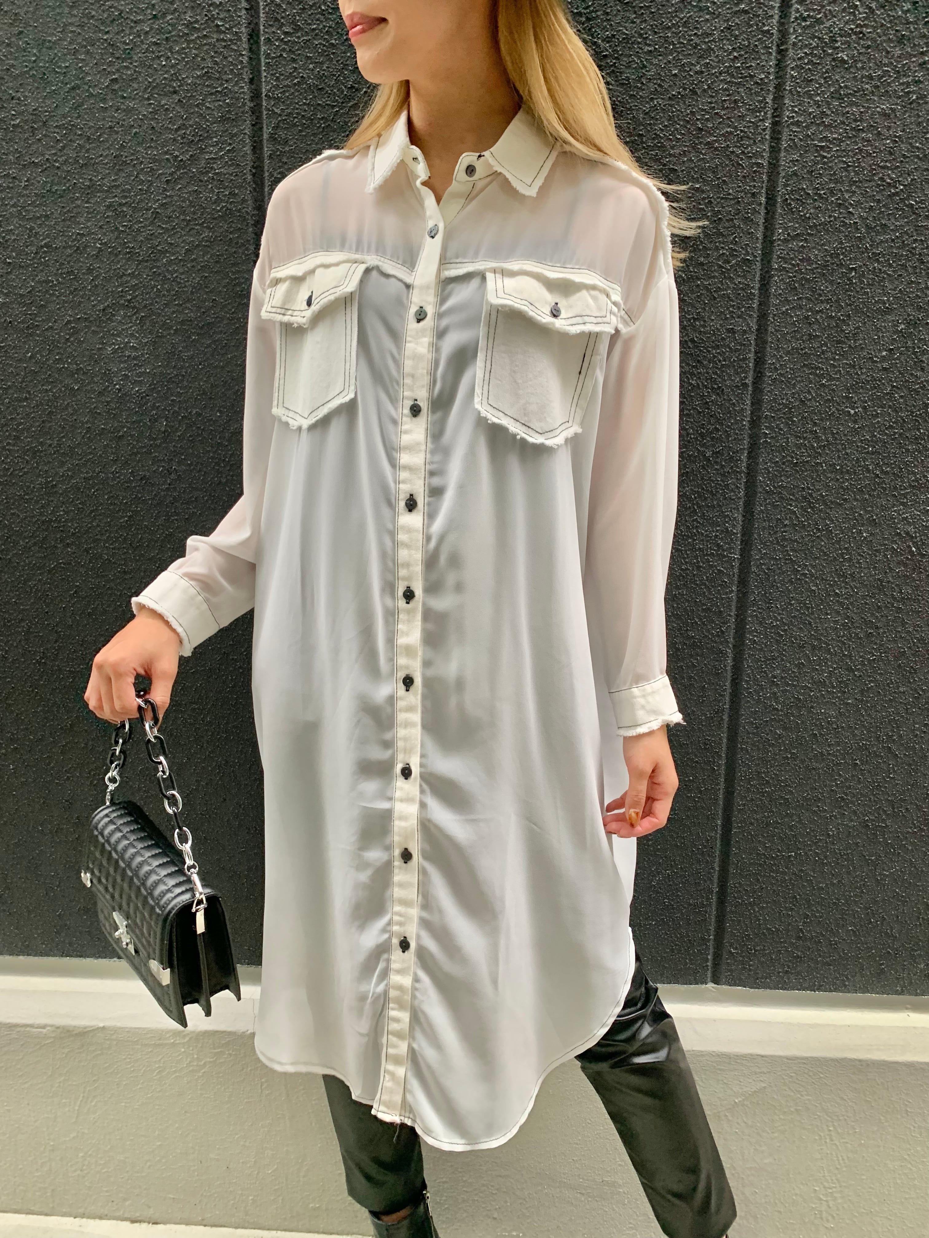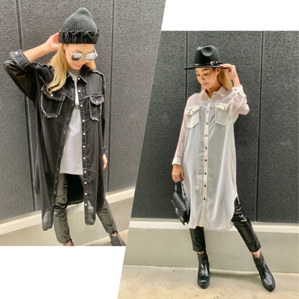 denim chiffon long shirt one-piece デニムシフォン切り替えワンピース シャツワンピース デニム シフォン