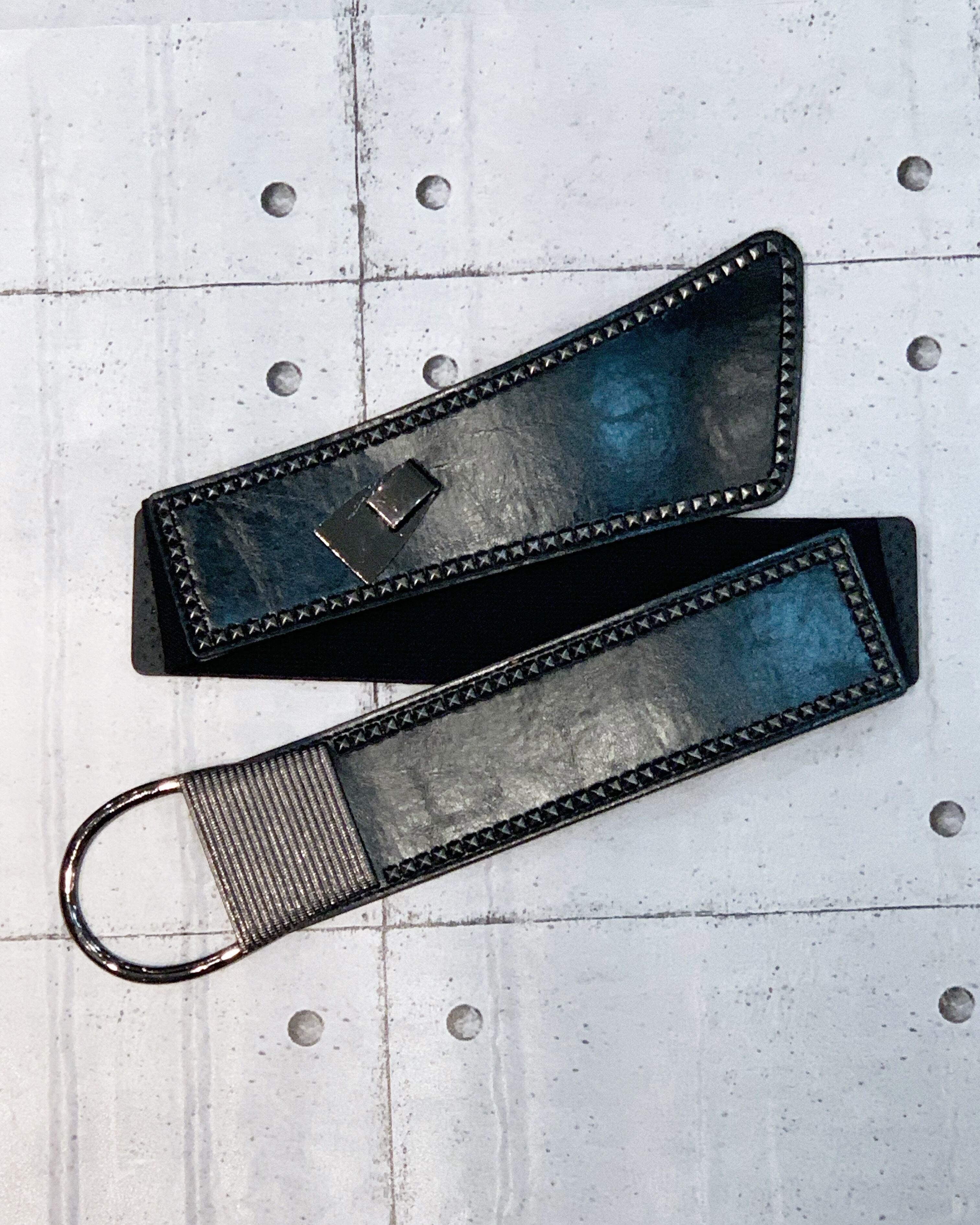 rivet trimming stretch crossover belt ベルト スタッズ シルバー ストレッチ ウエストマーク