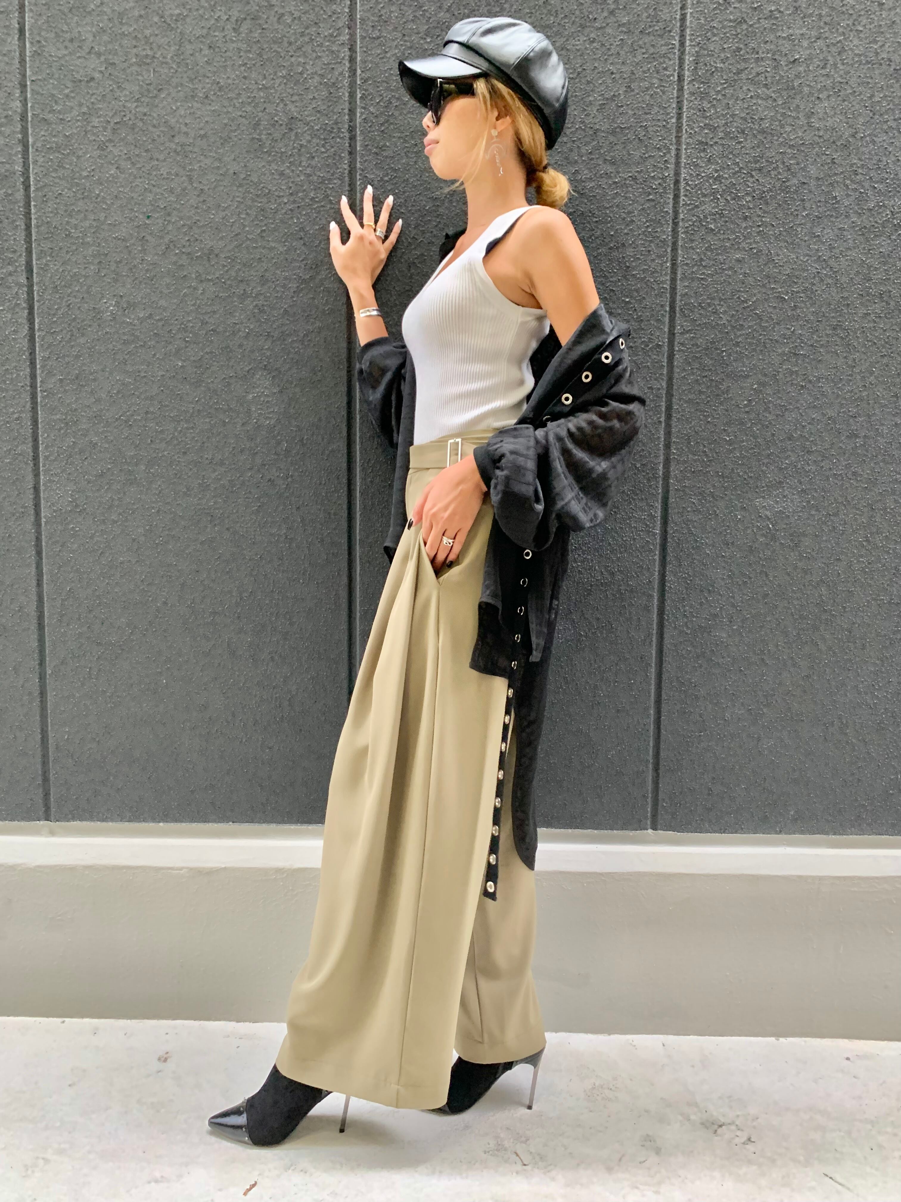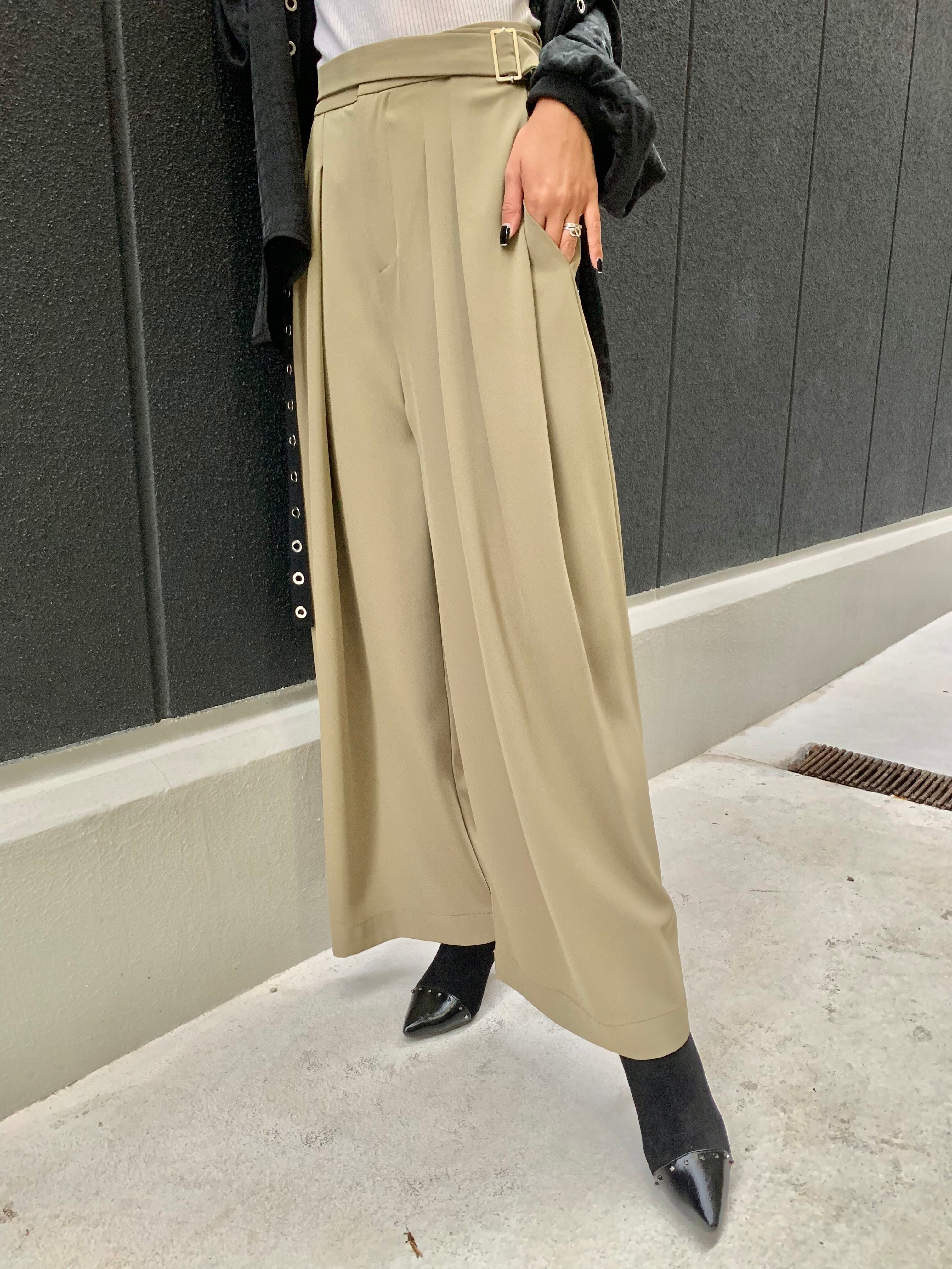 high-waist 2tuck wide leg pants パンツ ワイドパンツ タック入りパンツ ベルト付き