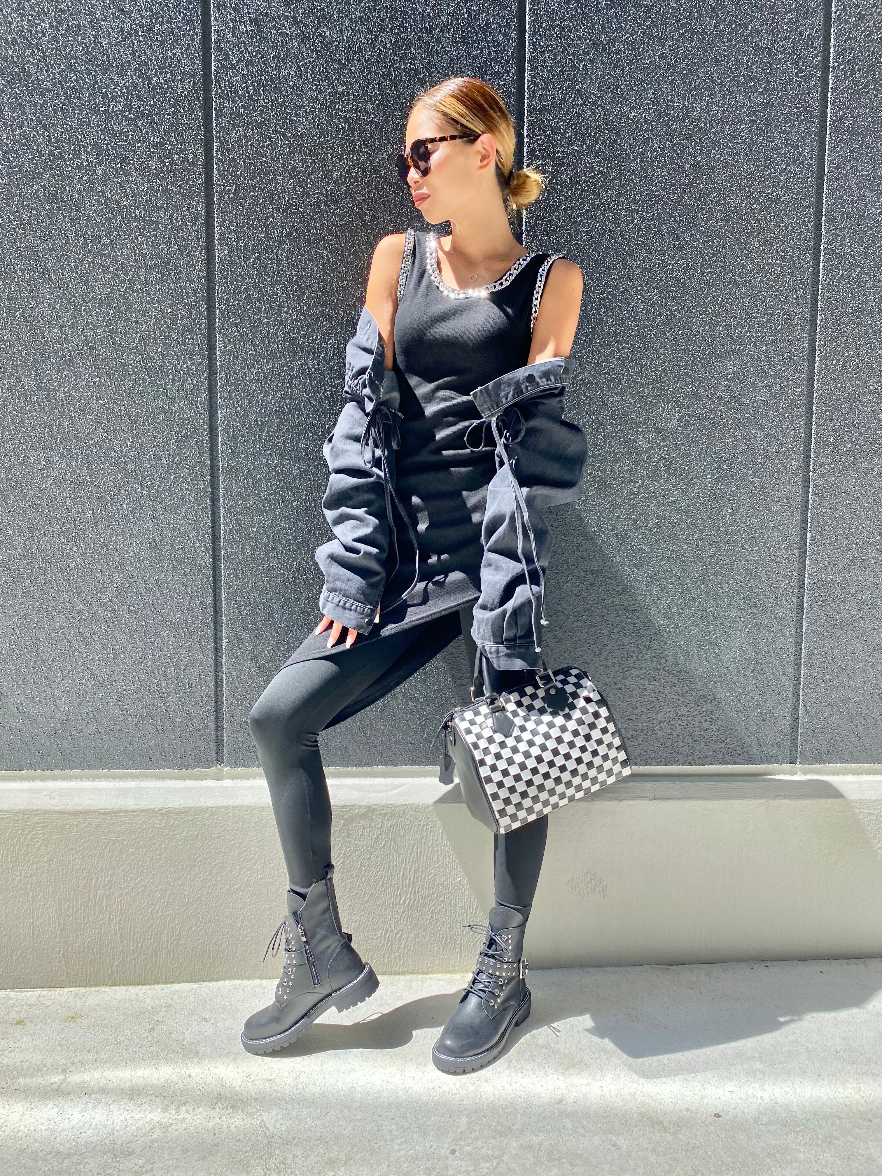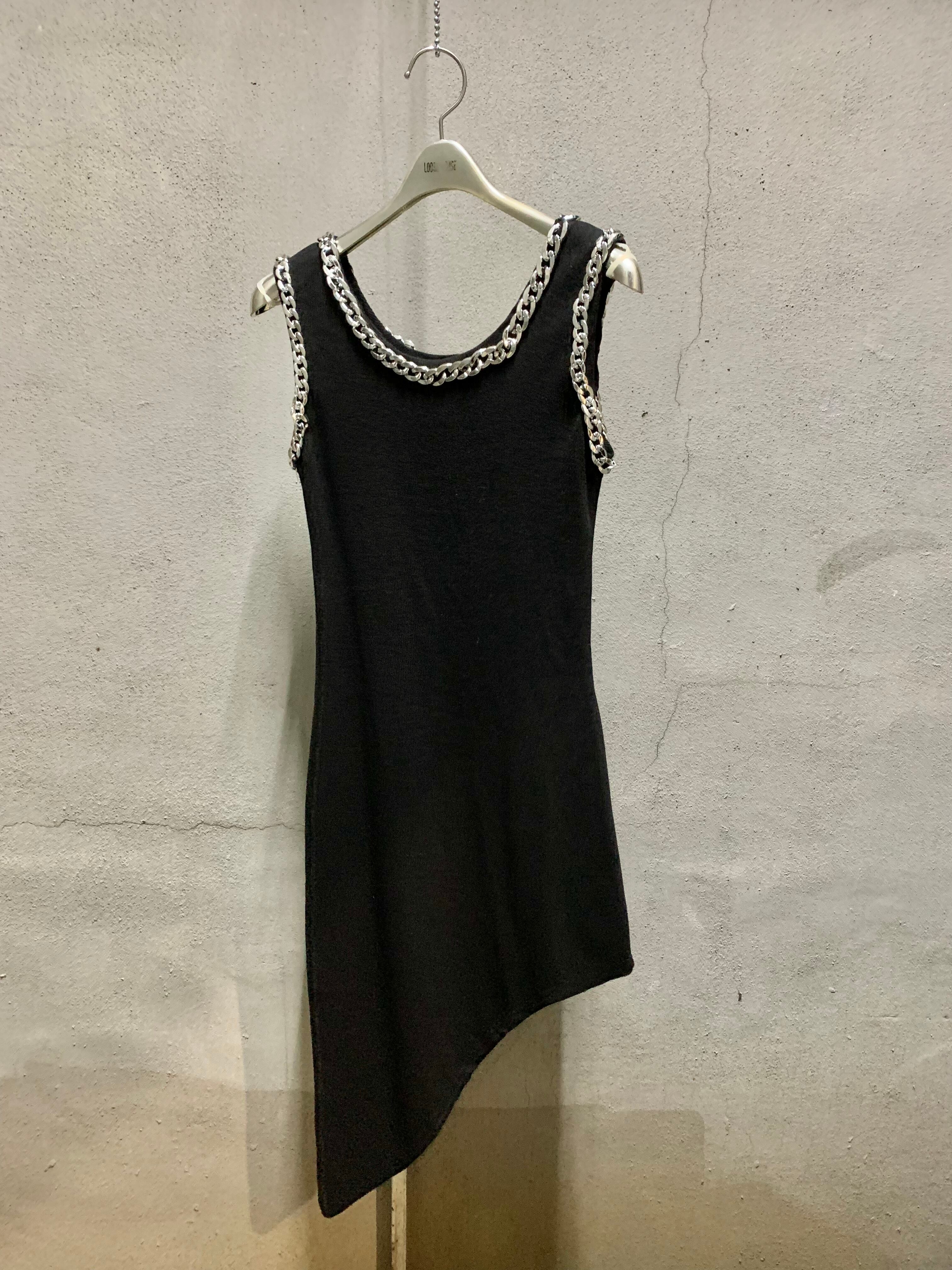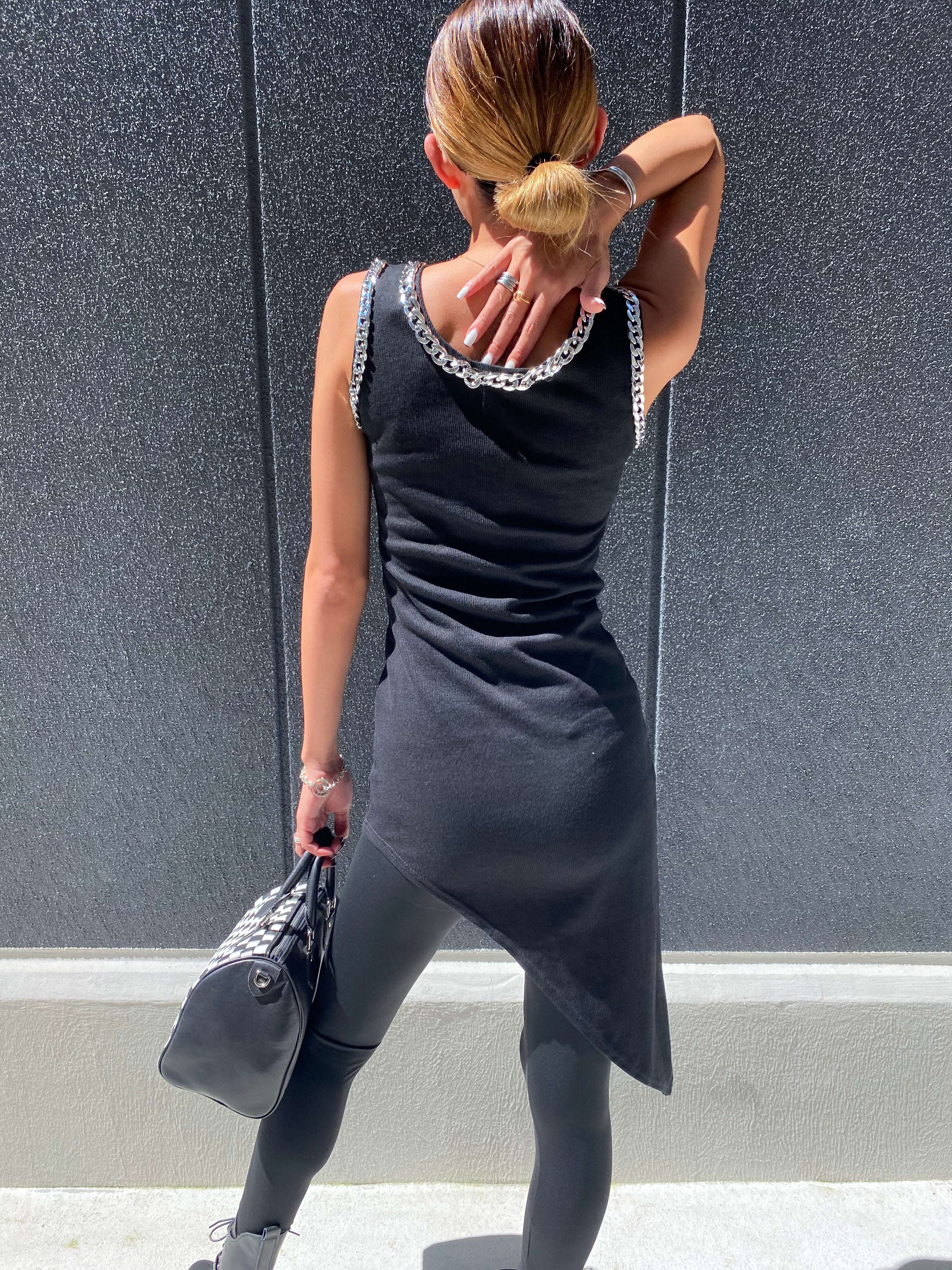chain asymmetry no sleeve tops トップス チェーン シルバー アシンメトリー タイトシルエット