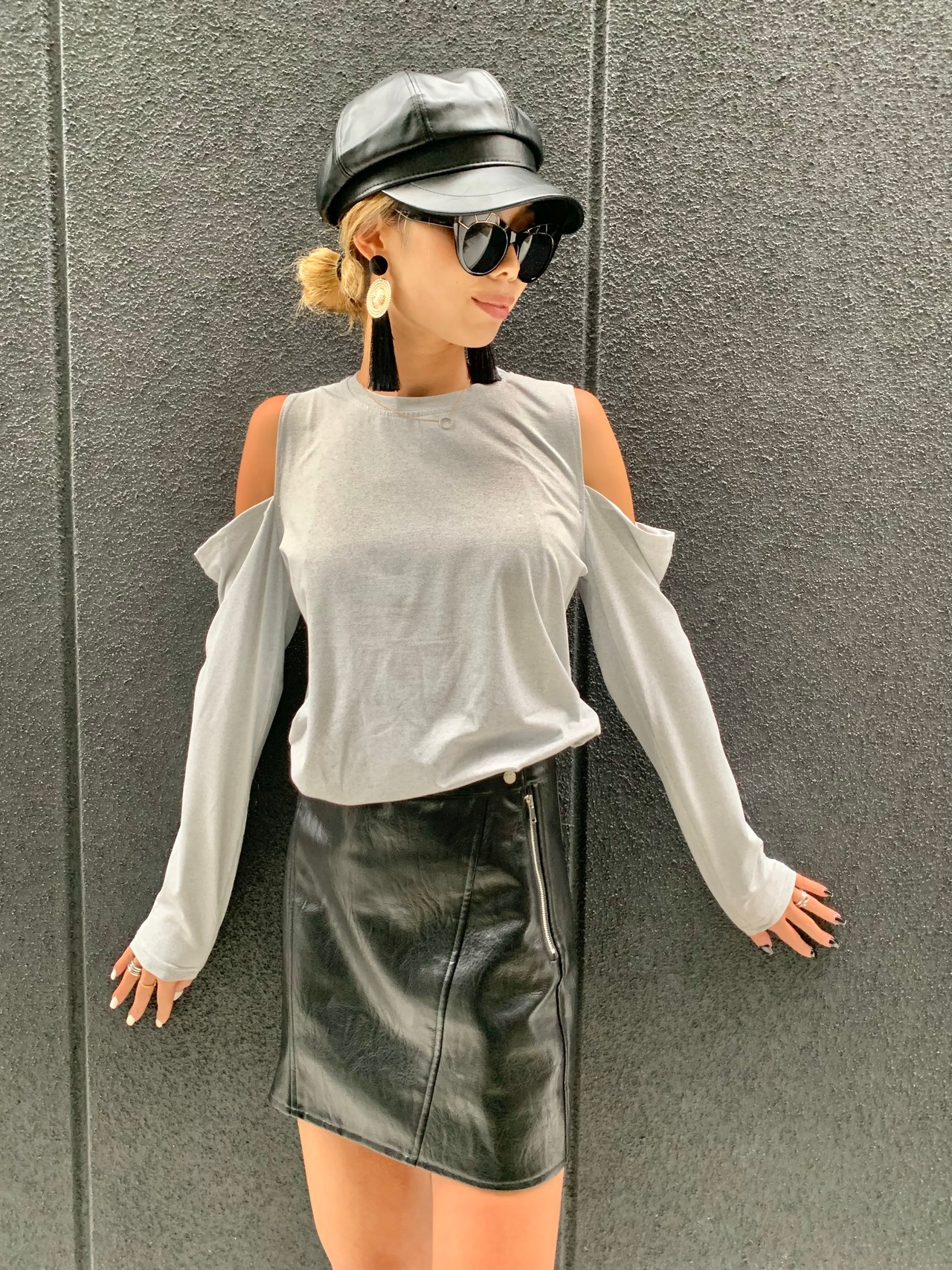 eco leather high-waist mini skirt スカート ミニスカート エコレザー レザー 合皮 ジッパー