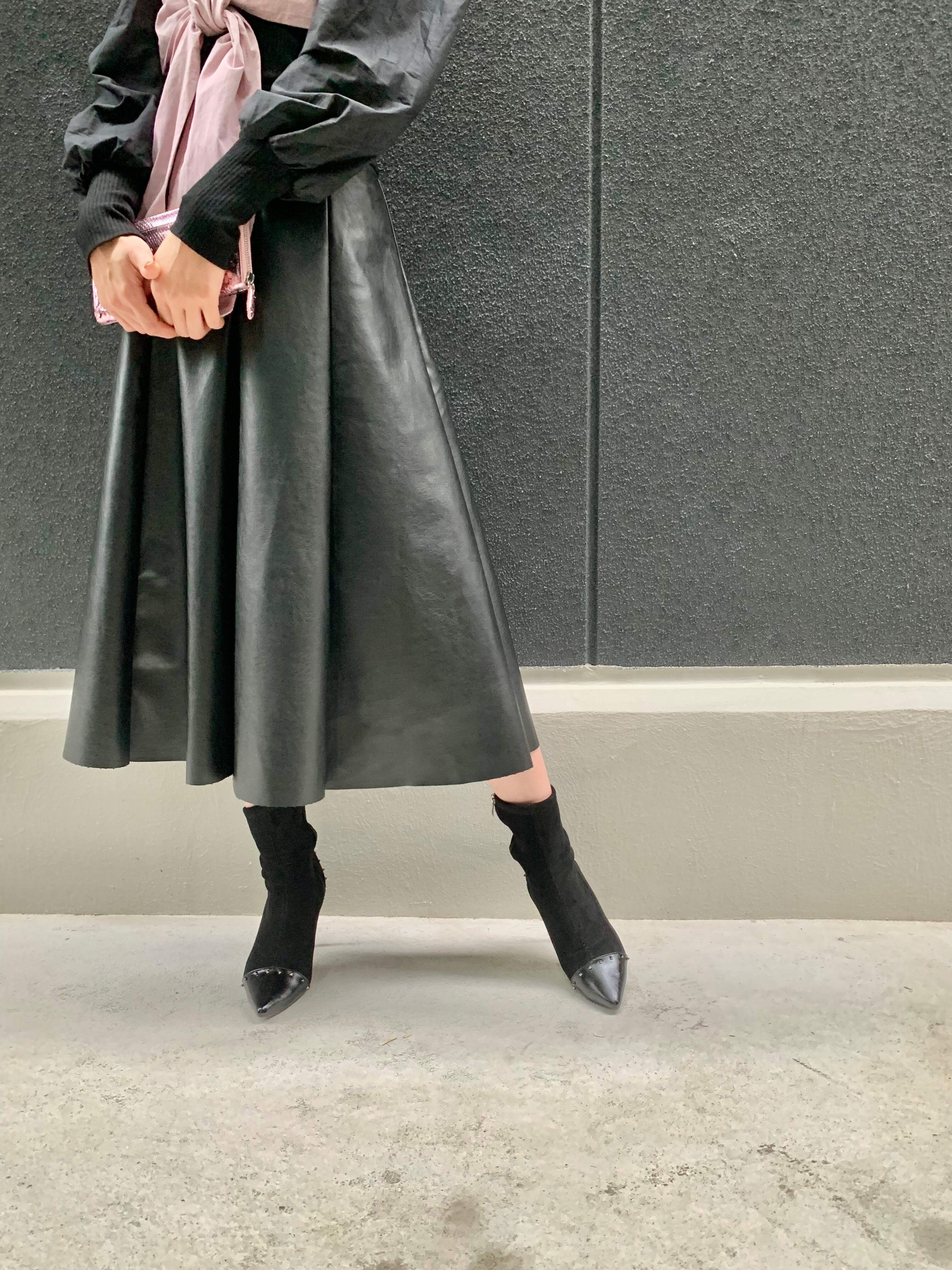eco leather flare long skirt スカート フレアスカート エコレザー レザー 合皮