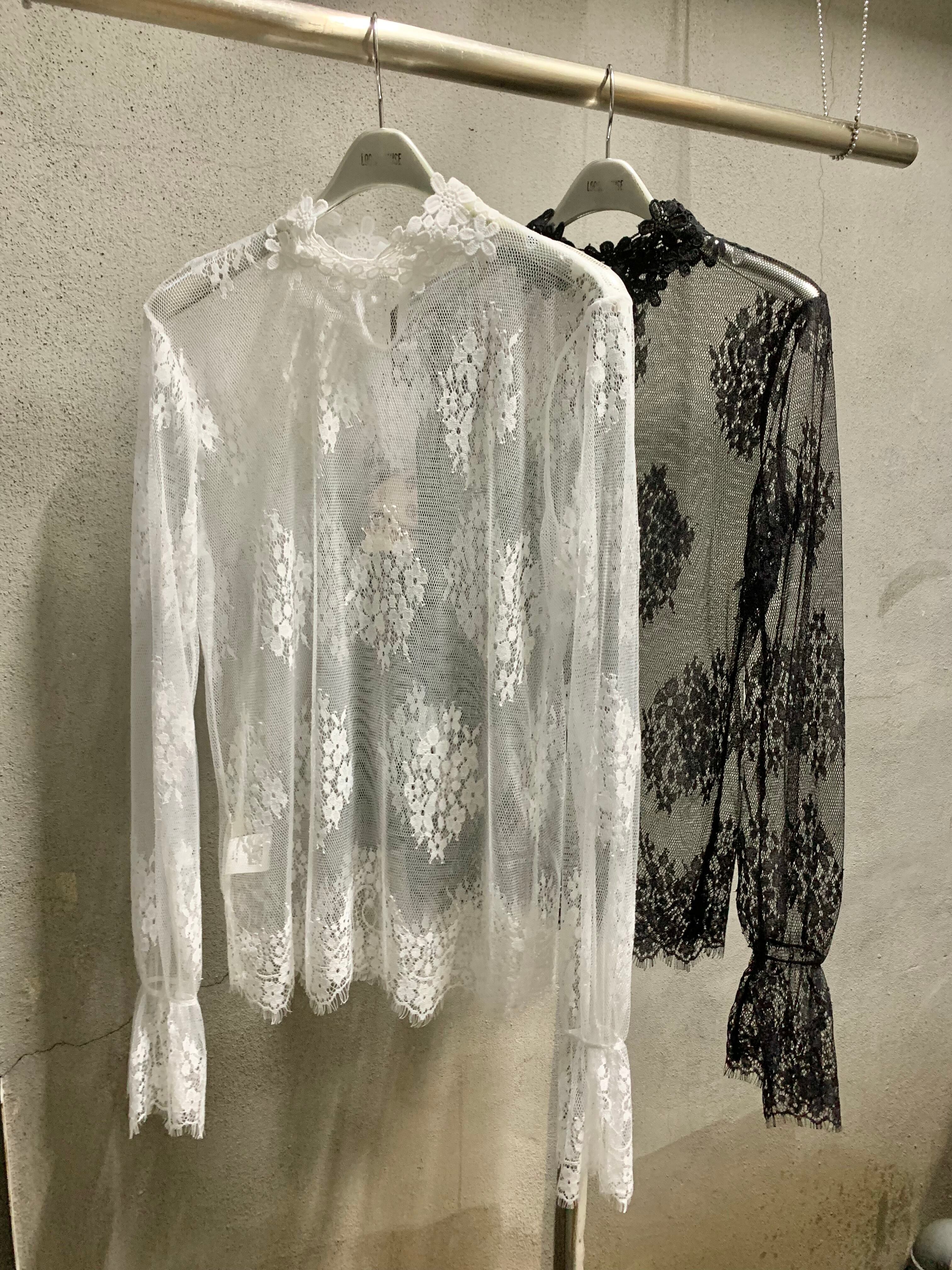 tulle mesh lace high-neck tops トップス レース チュール ハイネック 重ね着 レイヤード 透け感