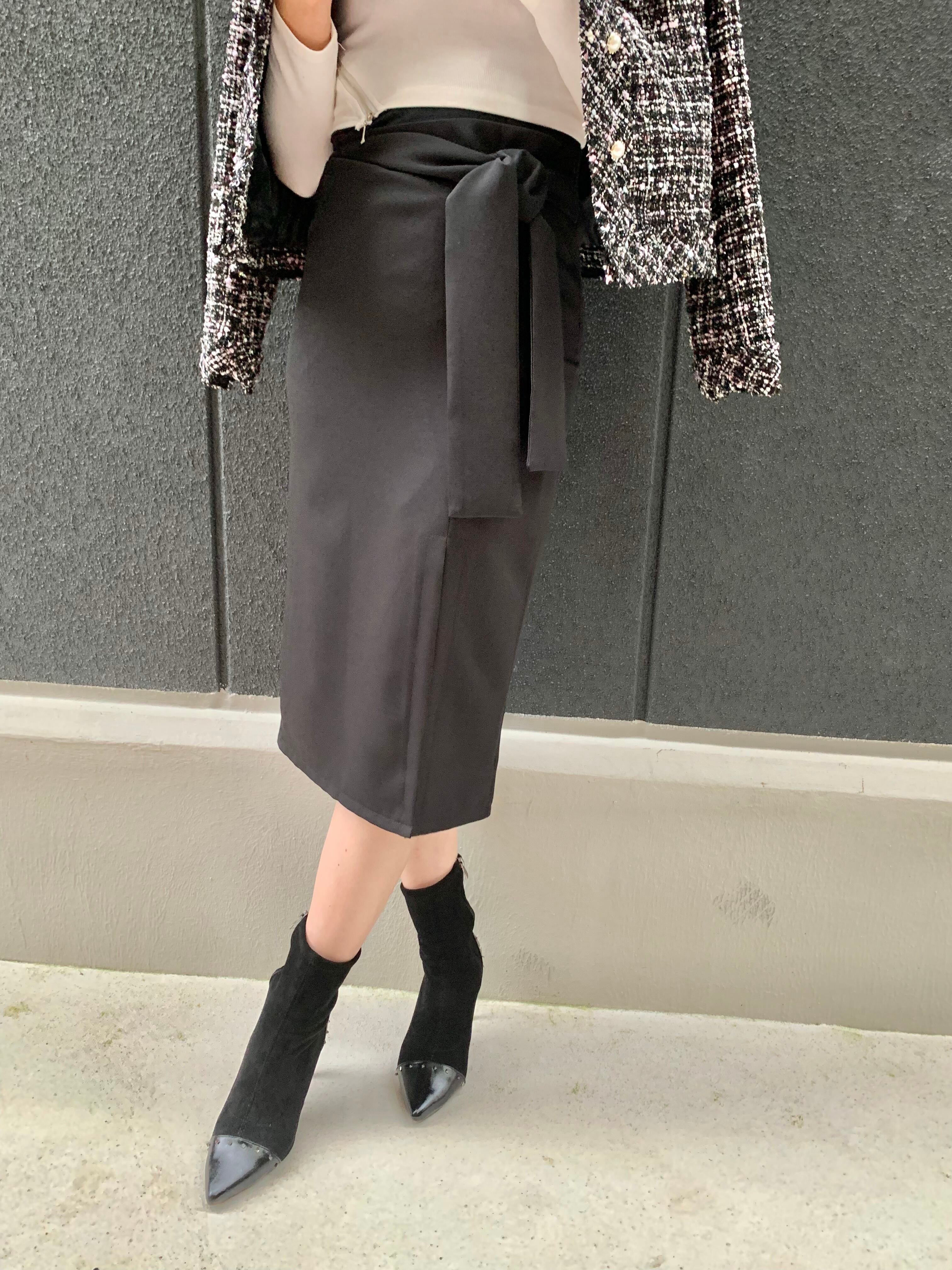 ribbon waist slit knee length skirt スカート ウエストリボン スリット きれいめ タイト