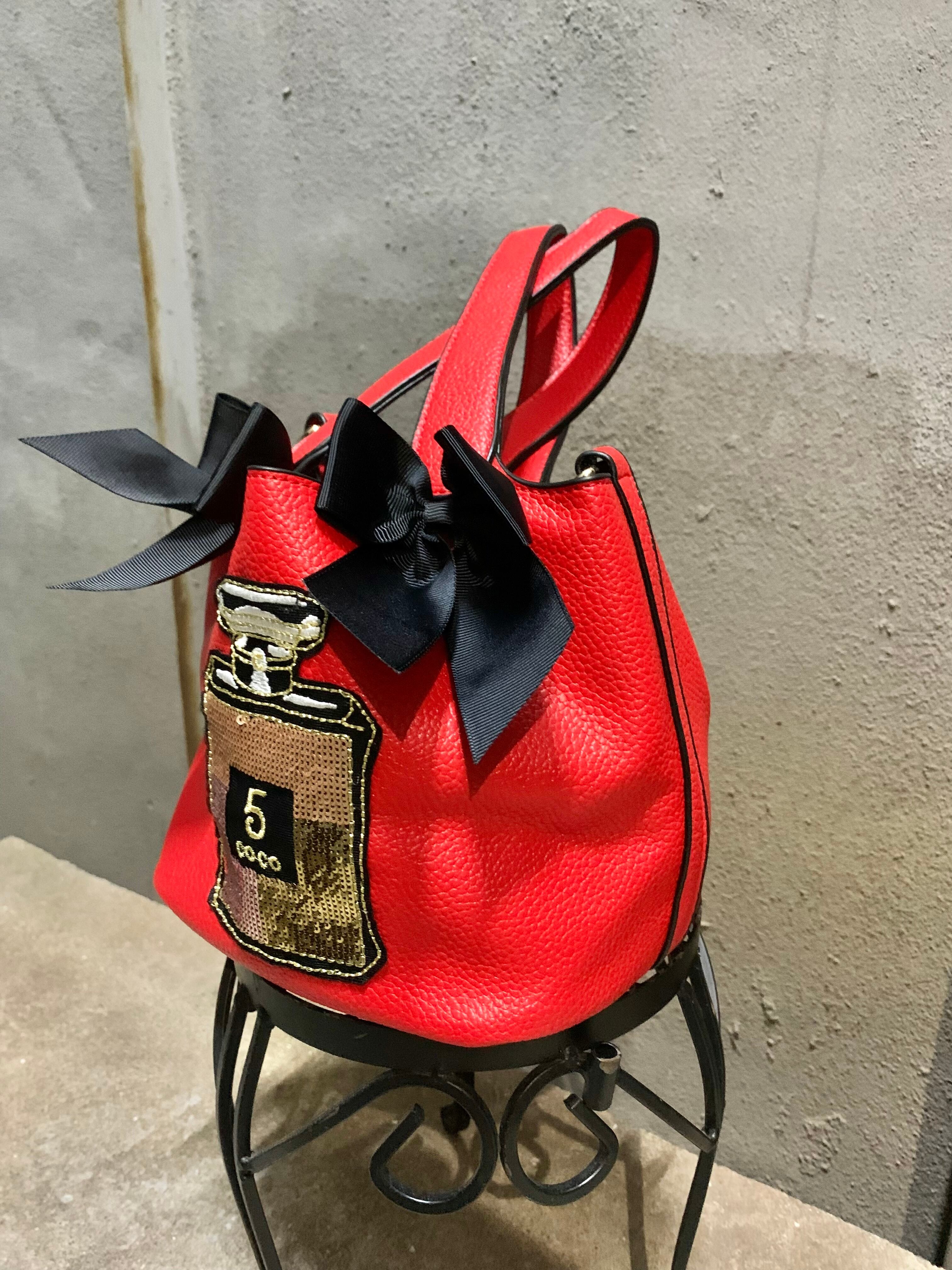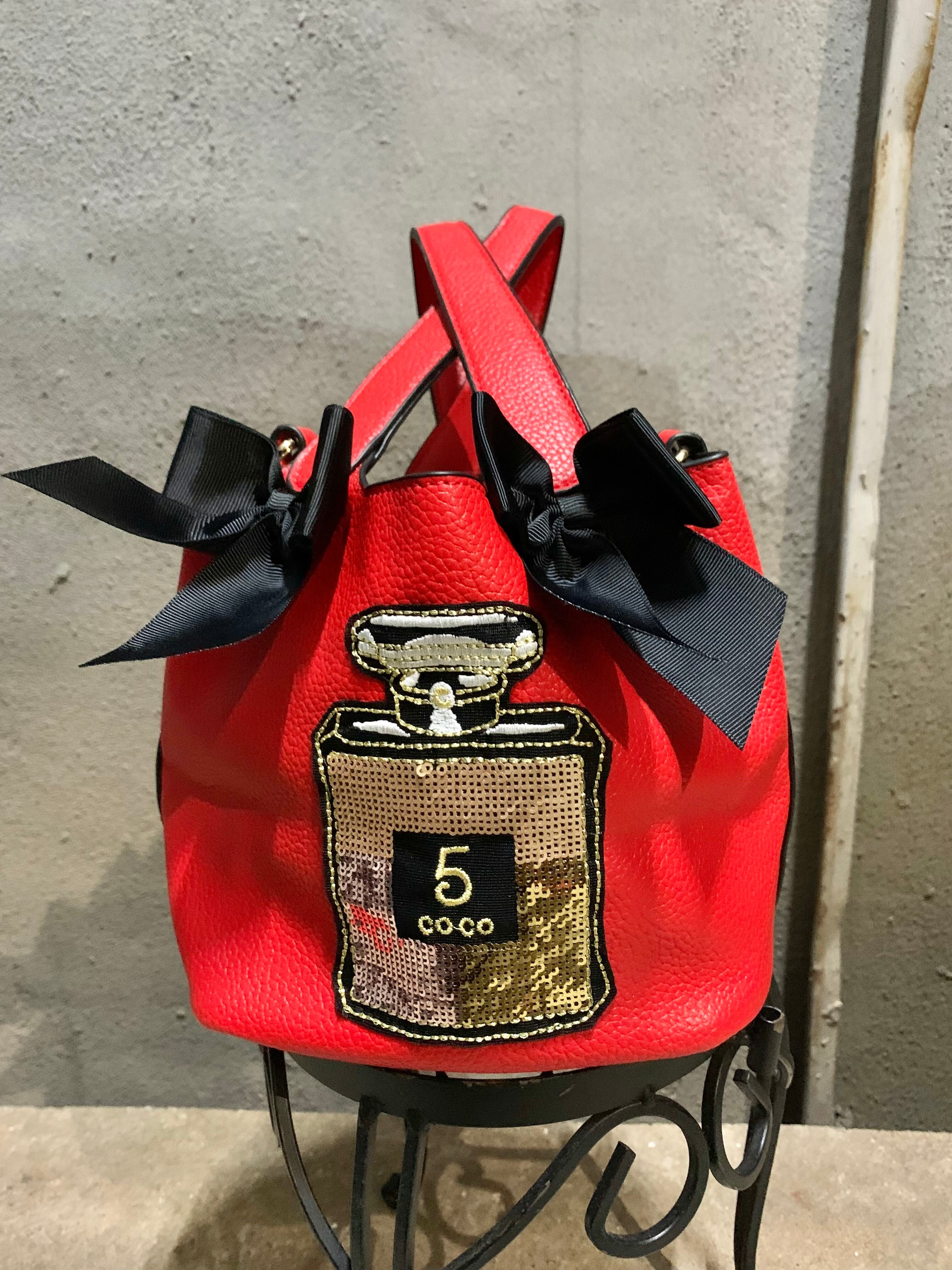 black ribbon×perfume patch mini bag バッグ 鞄 リボン ミニバッグ 持ちやすい