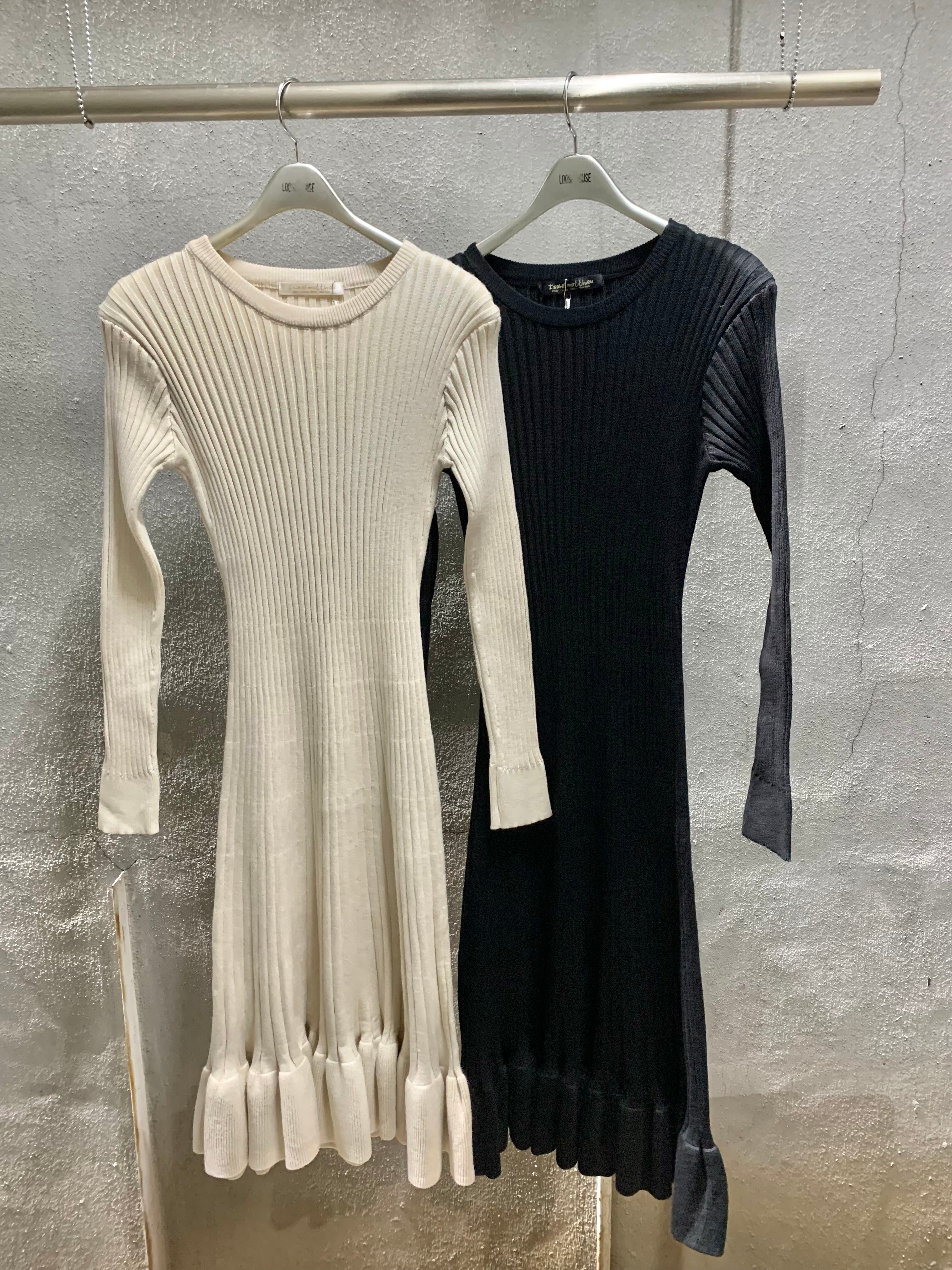 rib knit frill hem one-piece ワンピース ワンピ ニットワンピ リブニット フリル