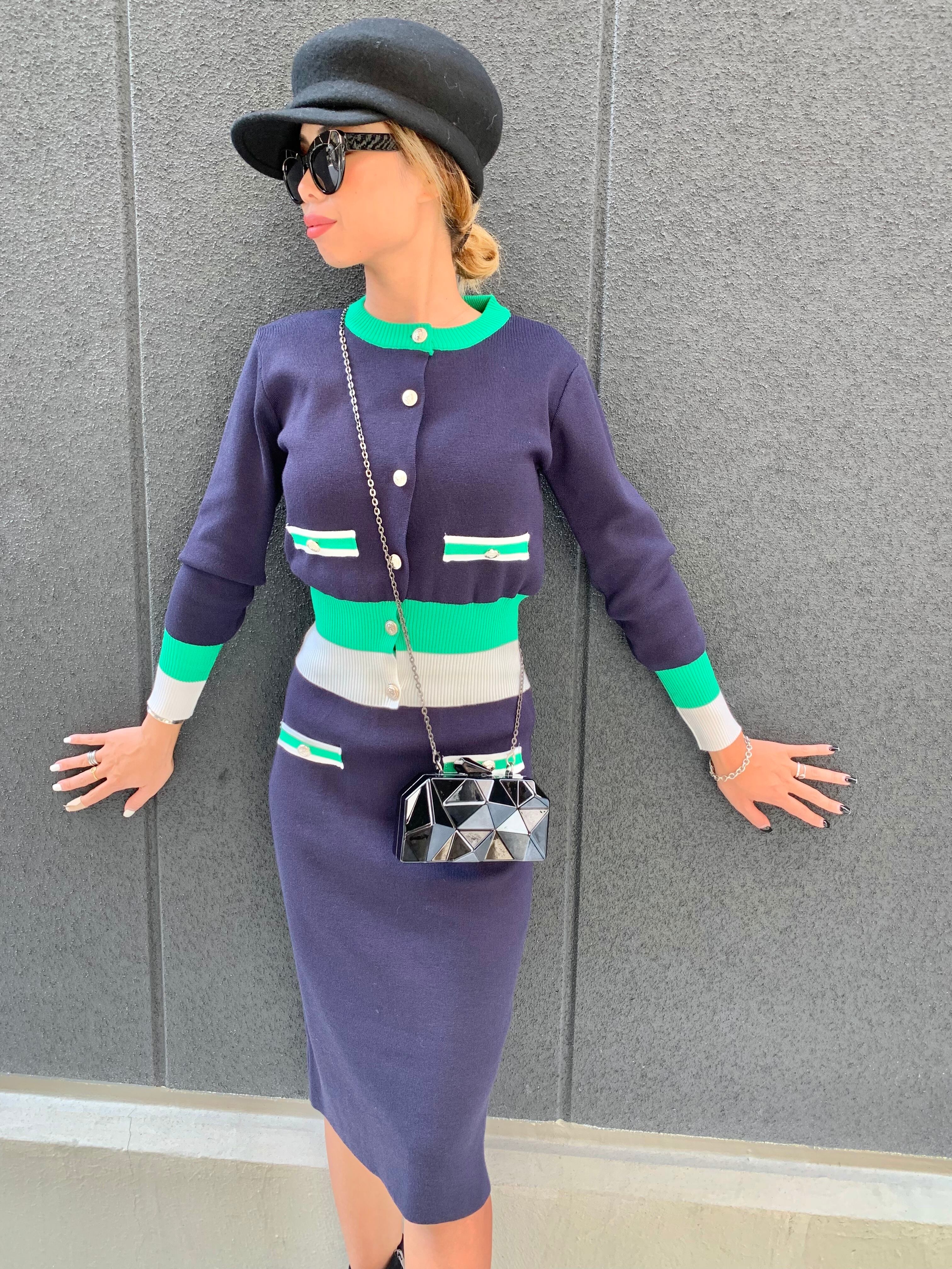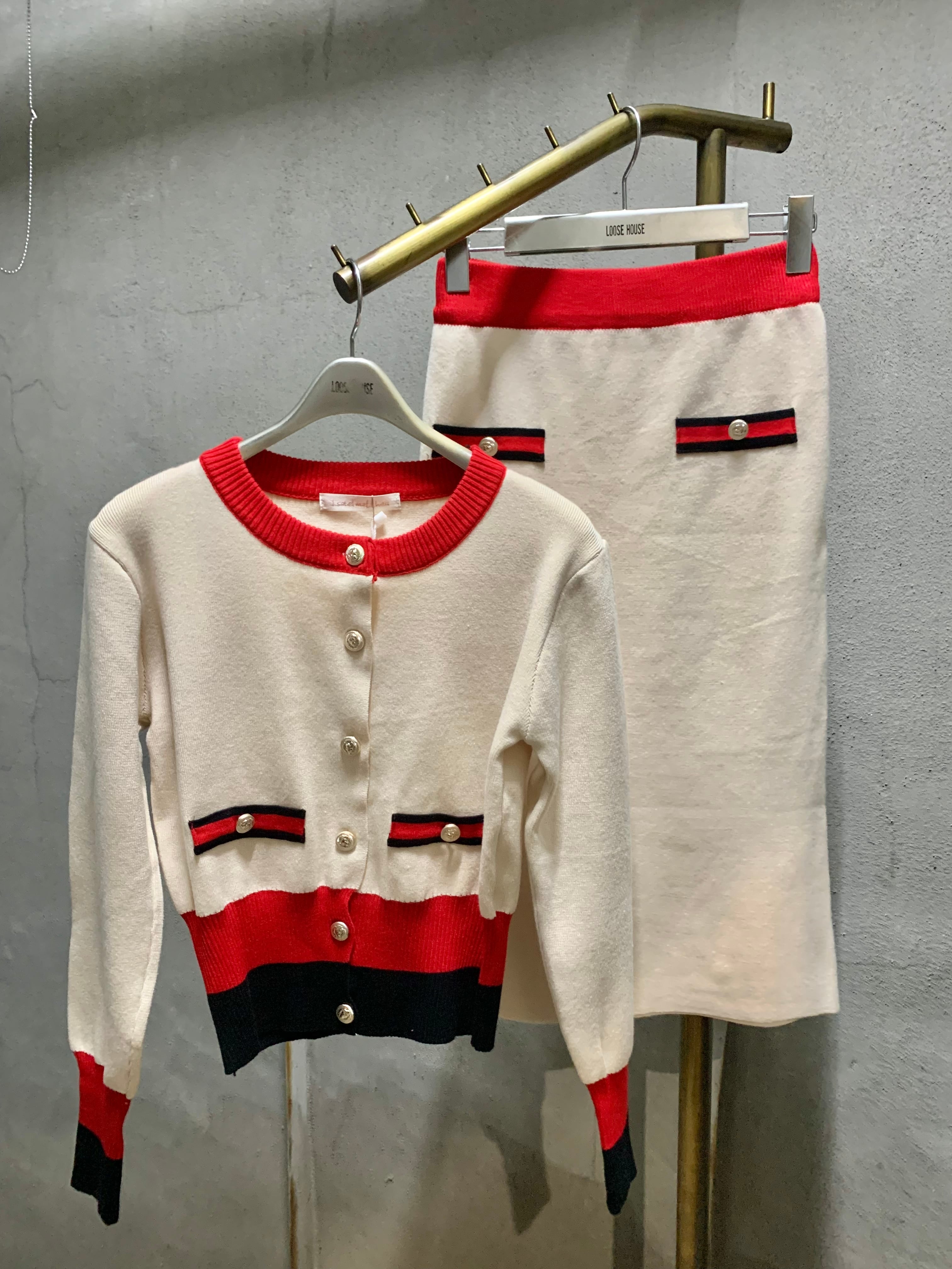 pattern change knit 2P set up セットアップ ニット 配色 金ボタン タイトスカート