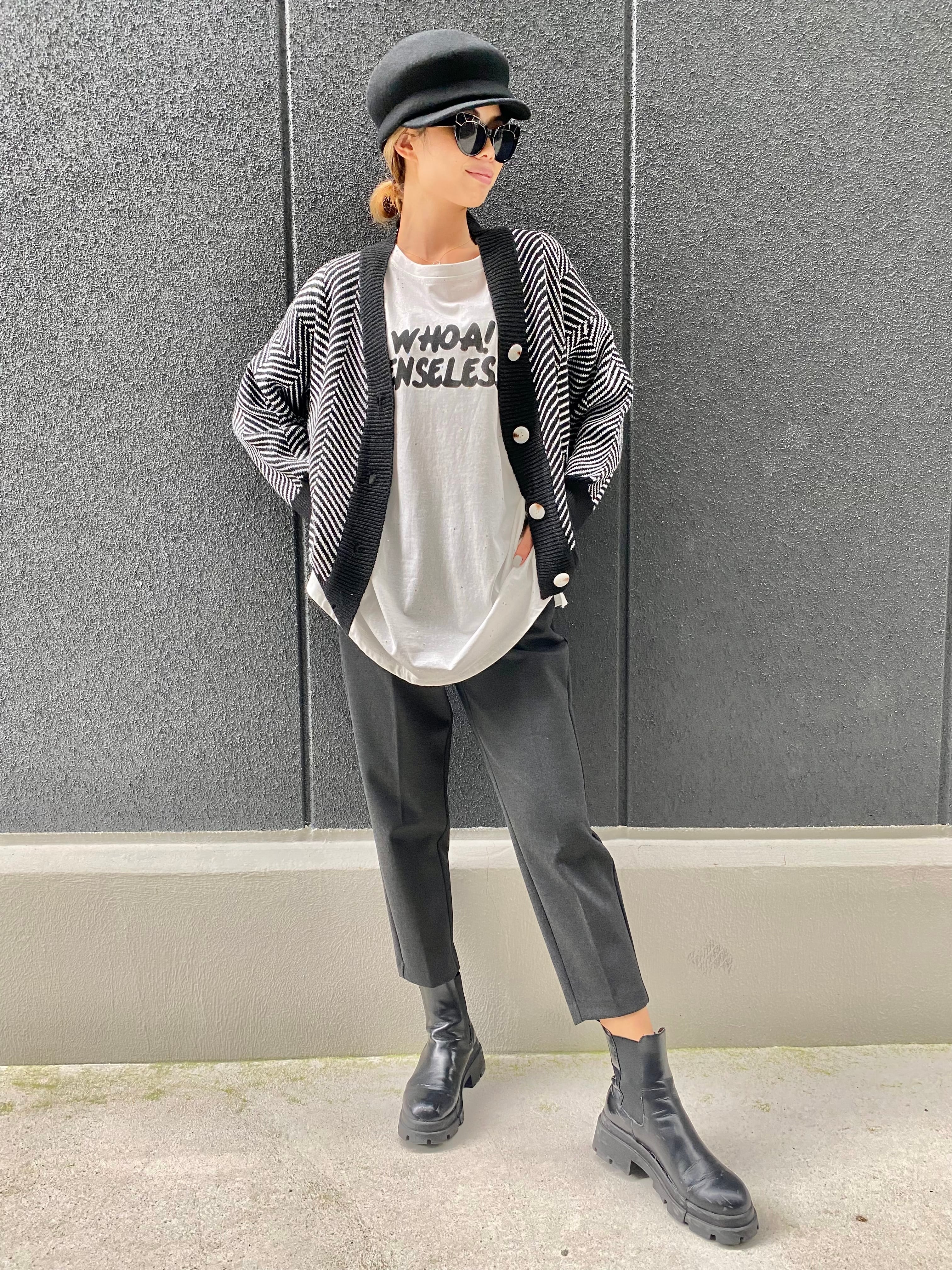 herringbone pattern knit cardigan ニット カーディガン ニットカーデ ヘリンボーン Vネック ゆったりめ ゆるニット