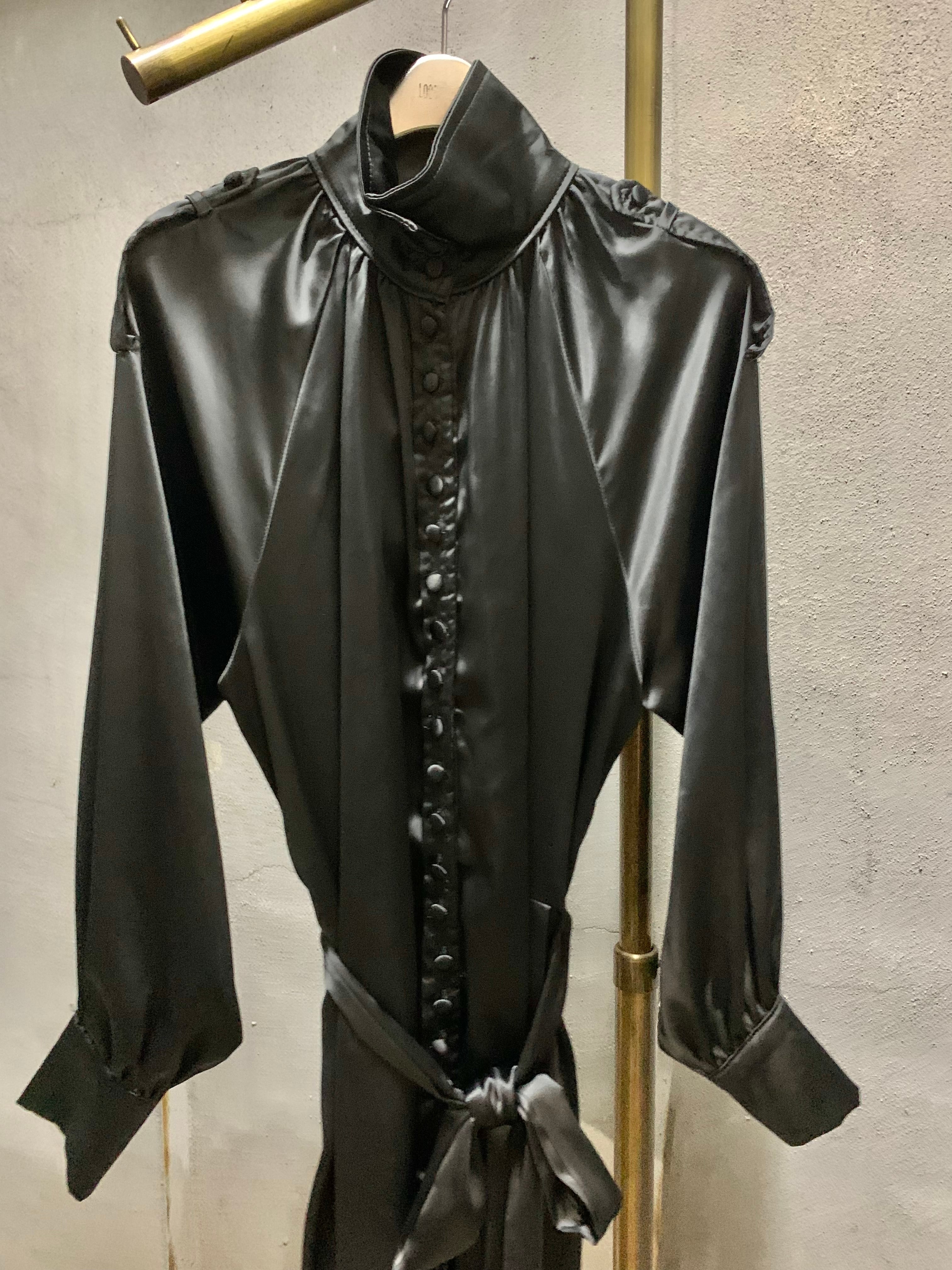shiny satin design one-piece ワンピース ワンピ サテン シャイニー ボタン スタンドネック コート風