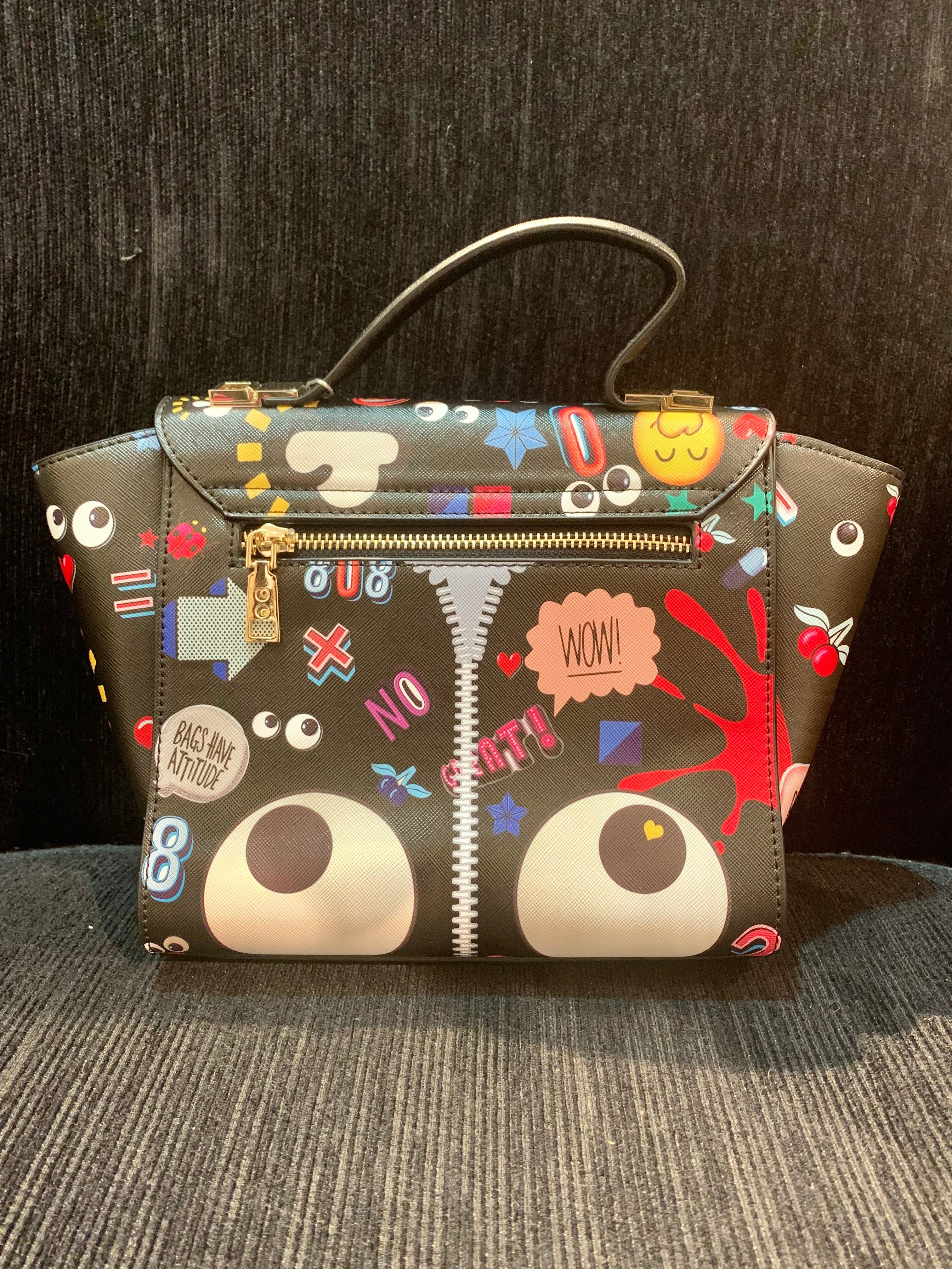 BIG EYEや絵文字プリントのポップなバッグ