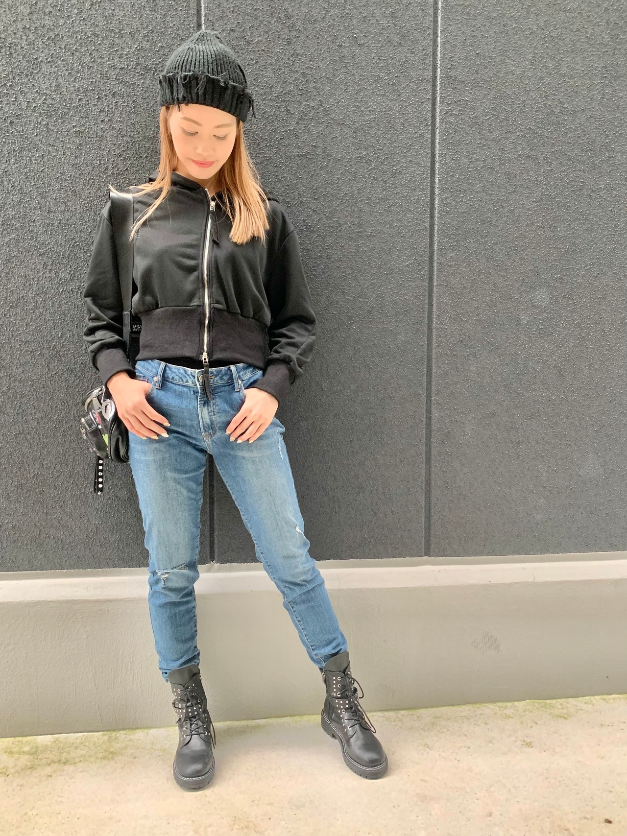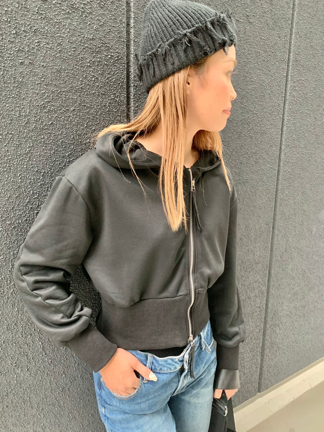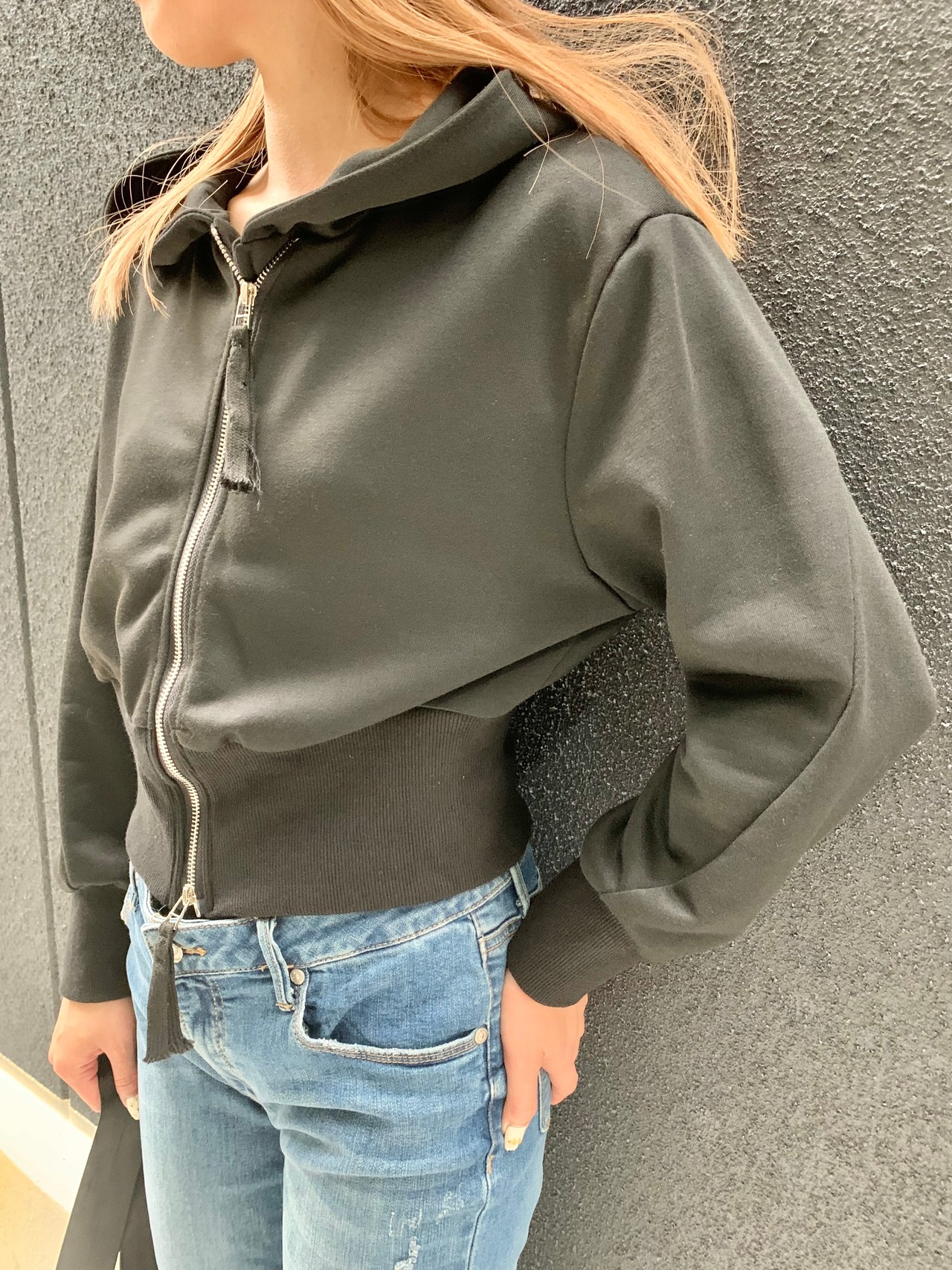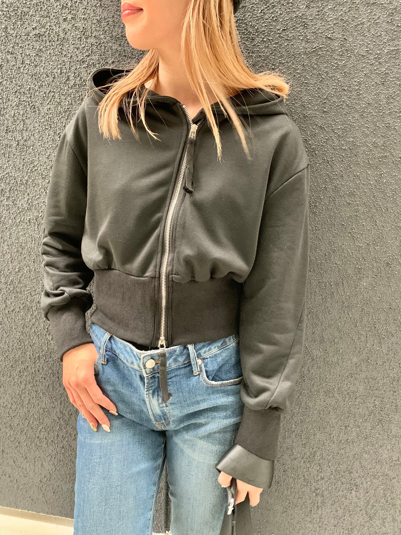 W zip croped hoodie フーディー パーカー スウェット ジッパー