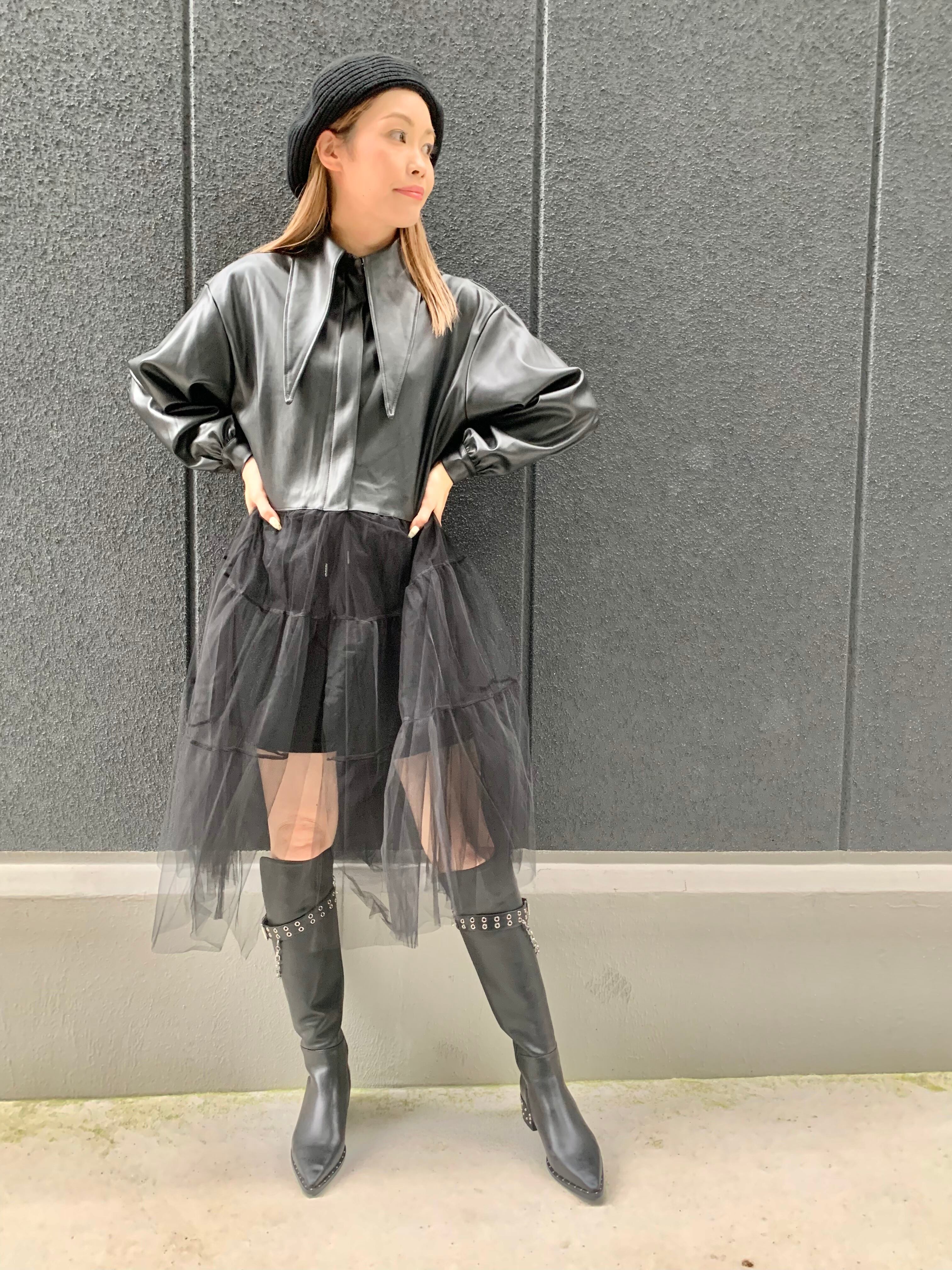 レザージャケットとチュールが