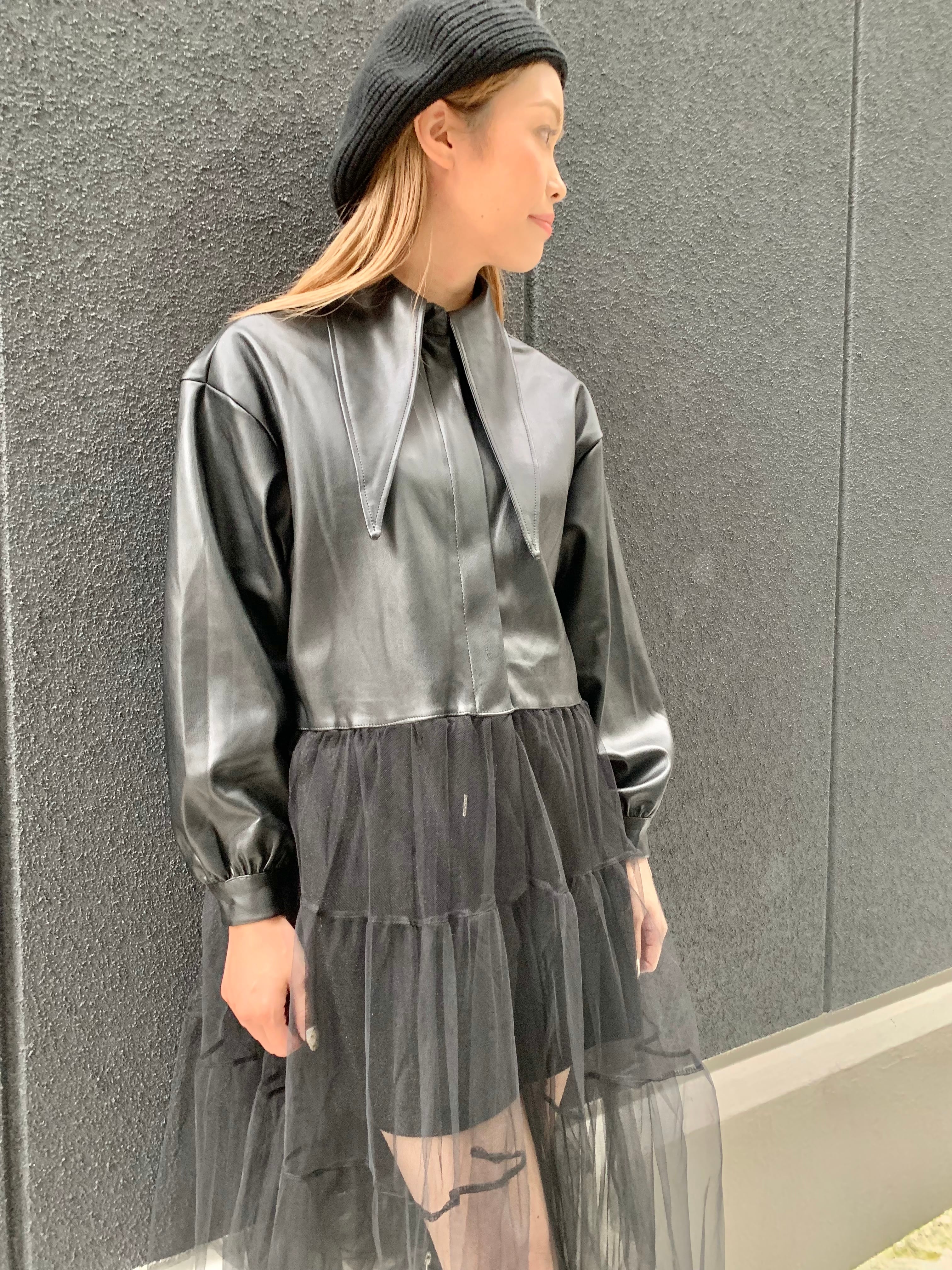 tulle docking eco leather jacket ジャケット チュール エコレザー 合皮 ドッキング