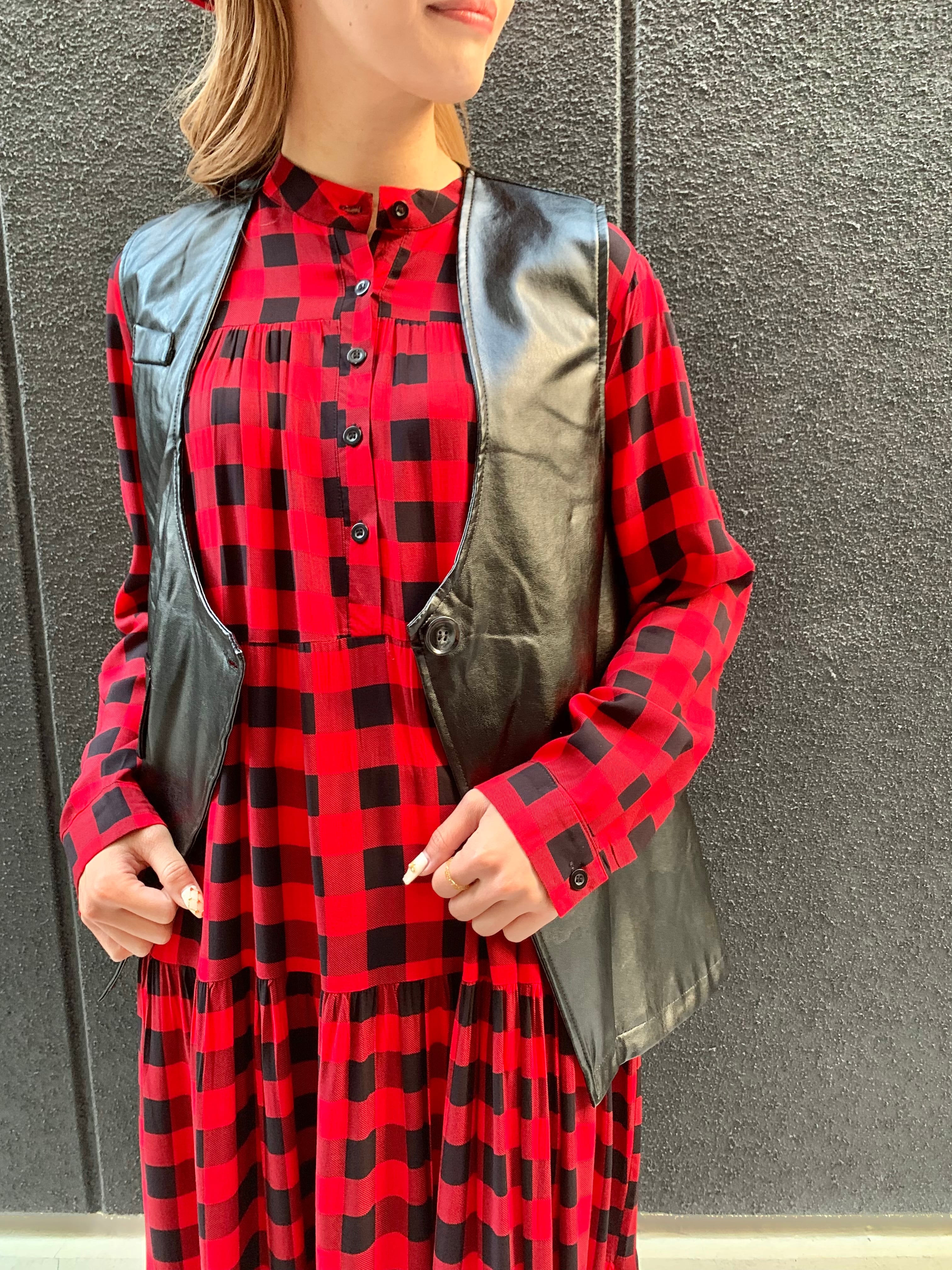 gingham check tiered gather long one-piece ワンピース ワンピ ギンガムチェック チェック ロングワンピ