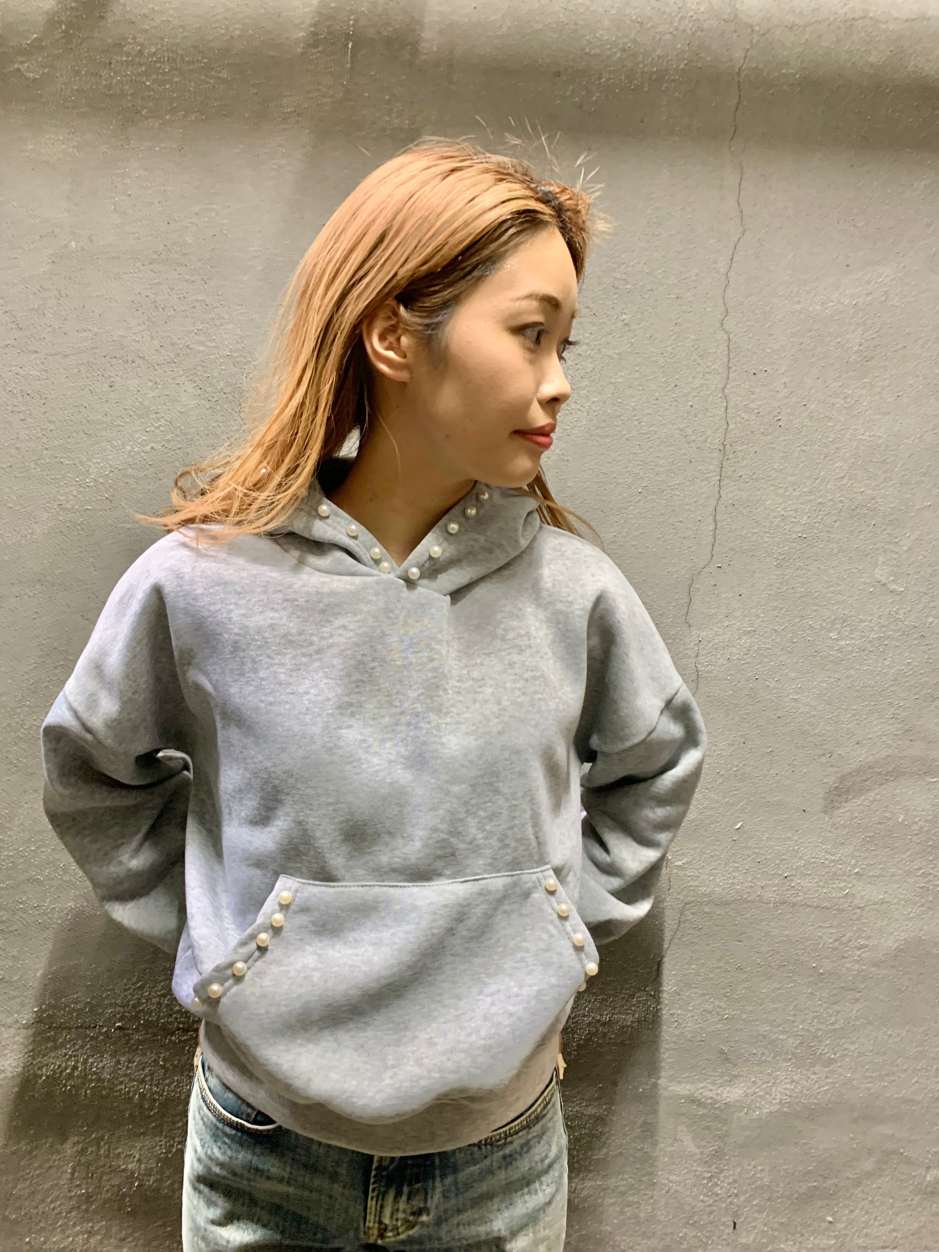 pearl trim foodie pullover フーディー パーカー スウェット プルオーバー パール ポケット 裏起毛