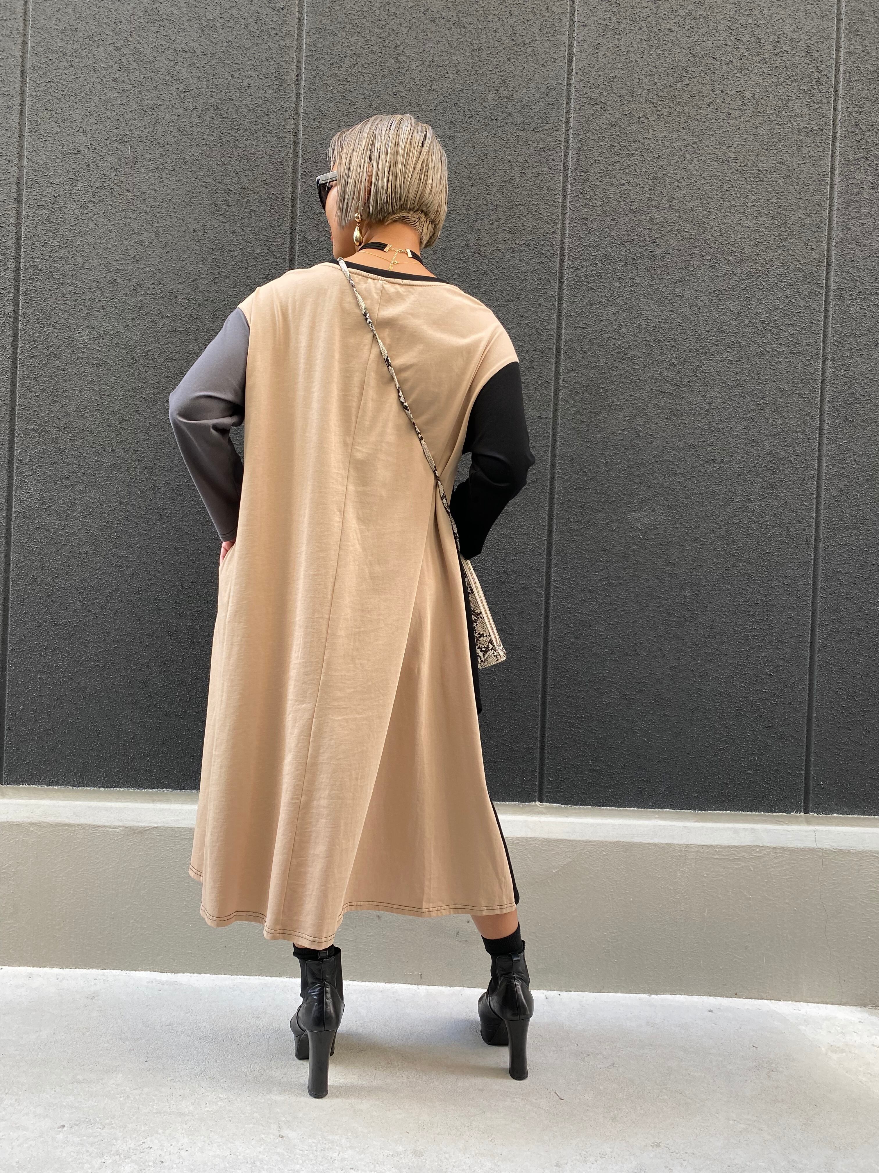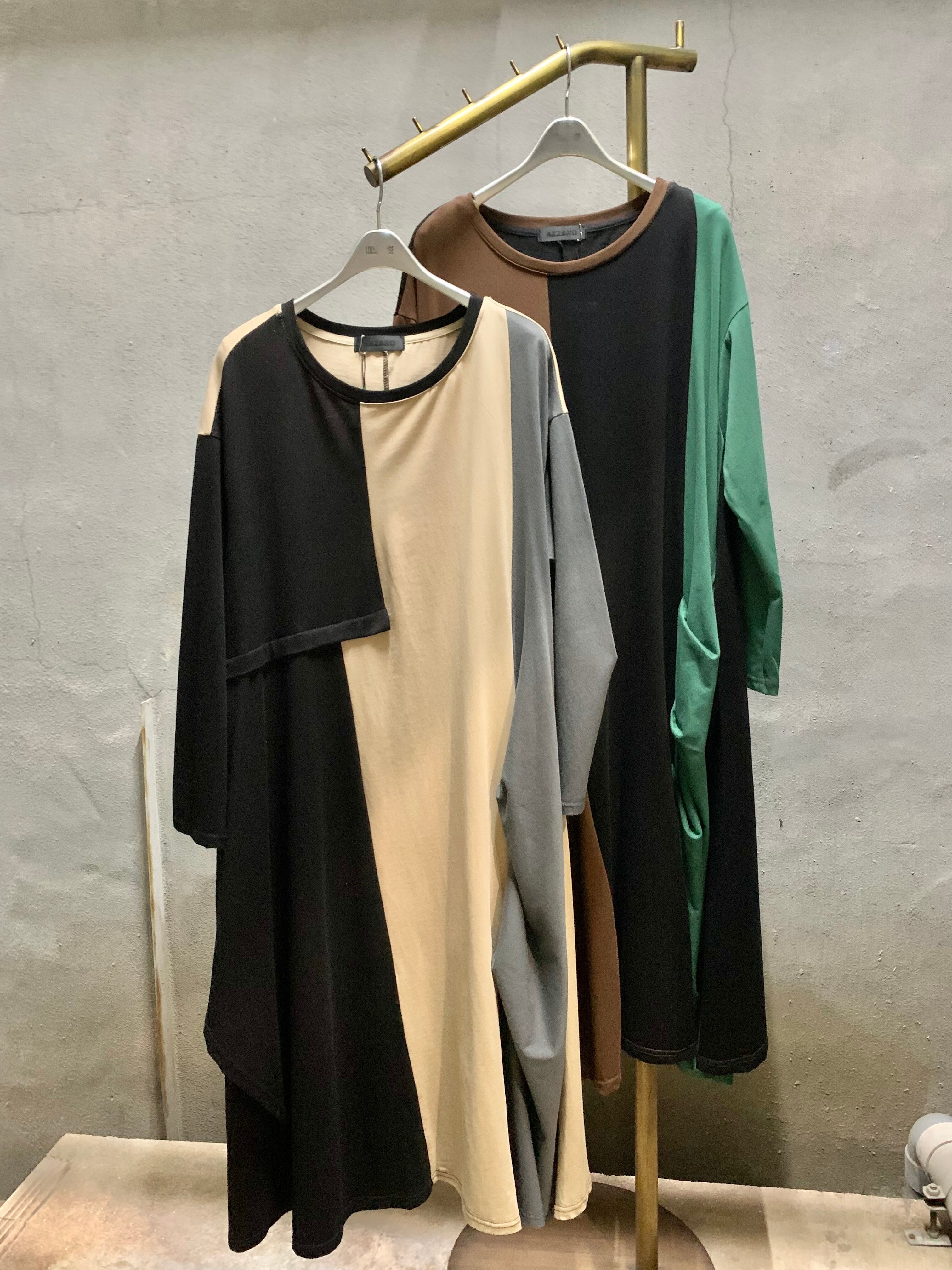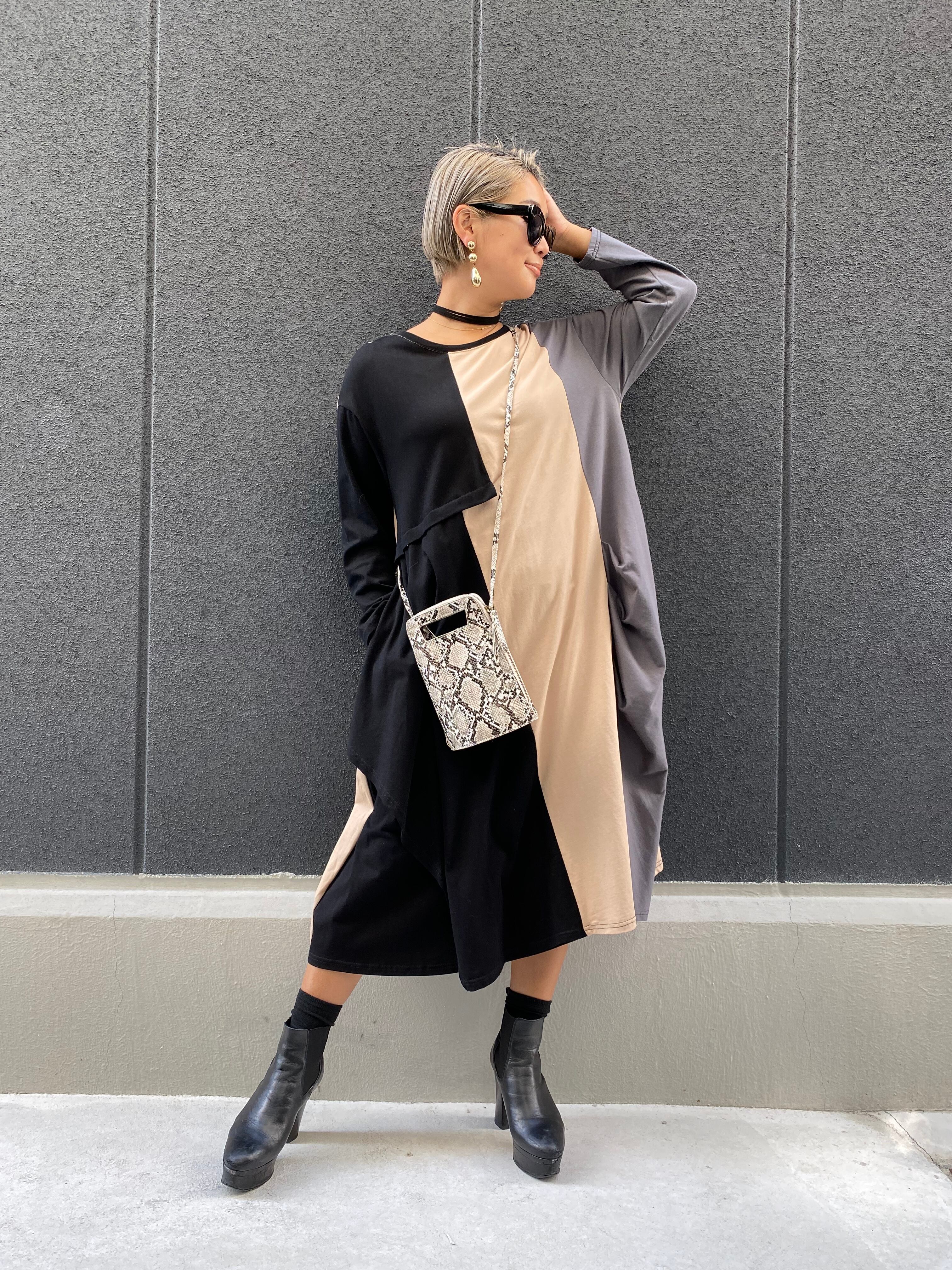 tuck gather design change long one-piece 配色 タック 切替 デザイン ロング ワンピース ゆったり