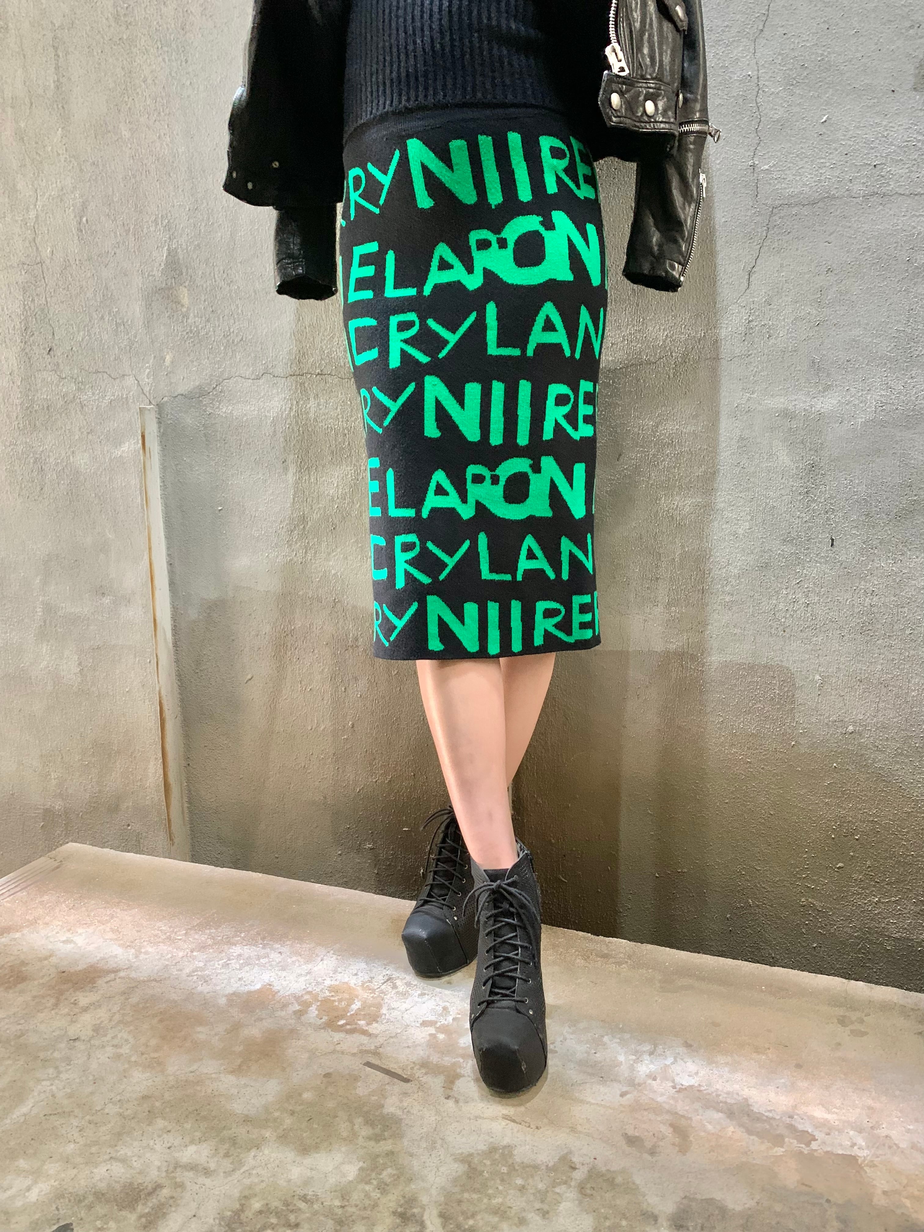 jacquard knit bi-color text skirt ニット スカート タイトスカート テキスト バイカラー