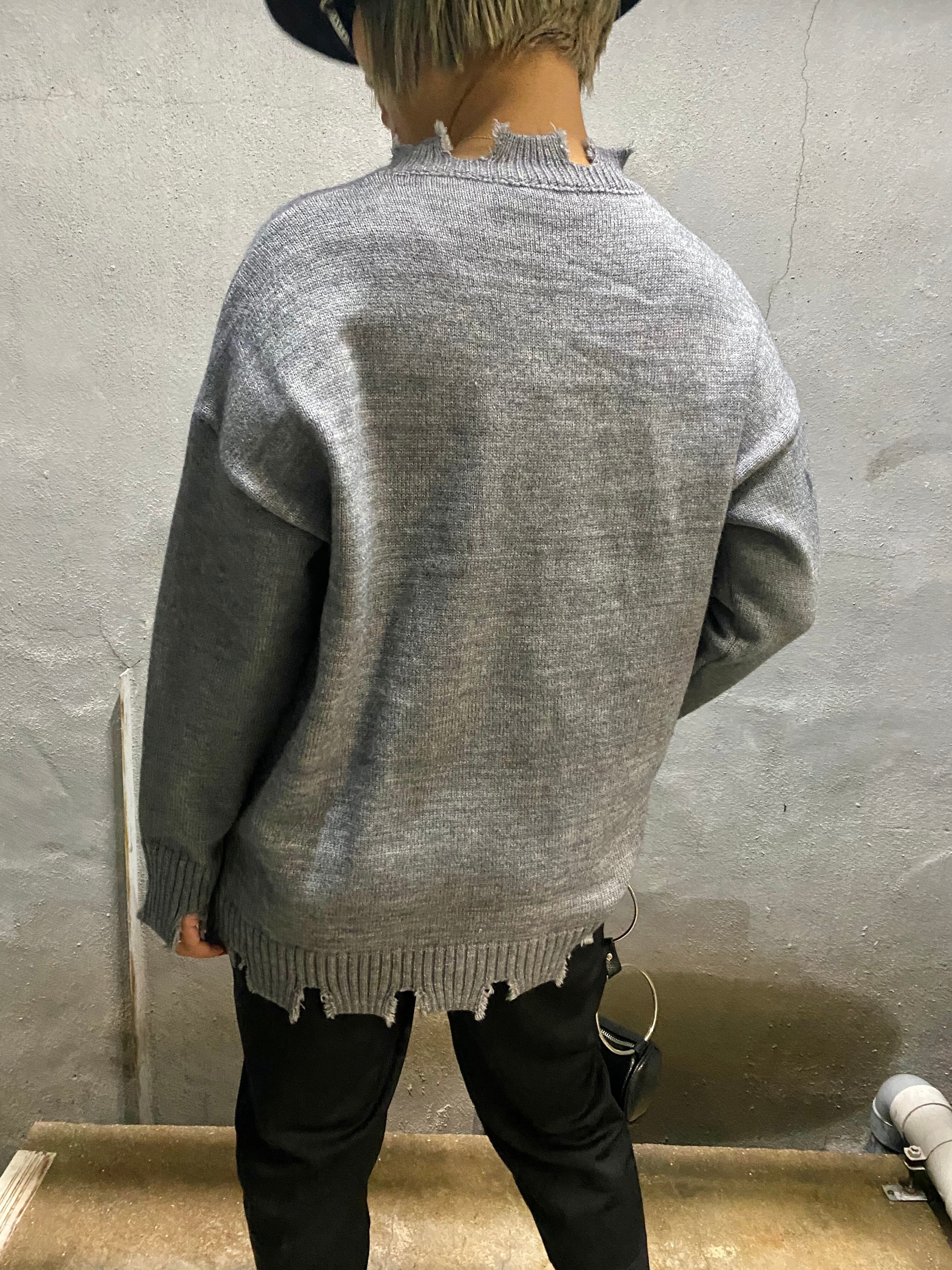 out pocket ・ magazine print patch damage knit tops ニット トップス ダメージ ポケット マガジンプリント