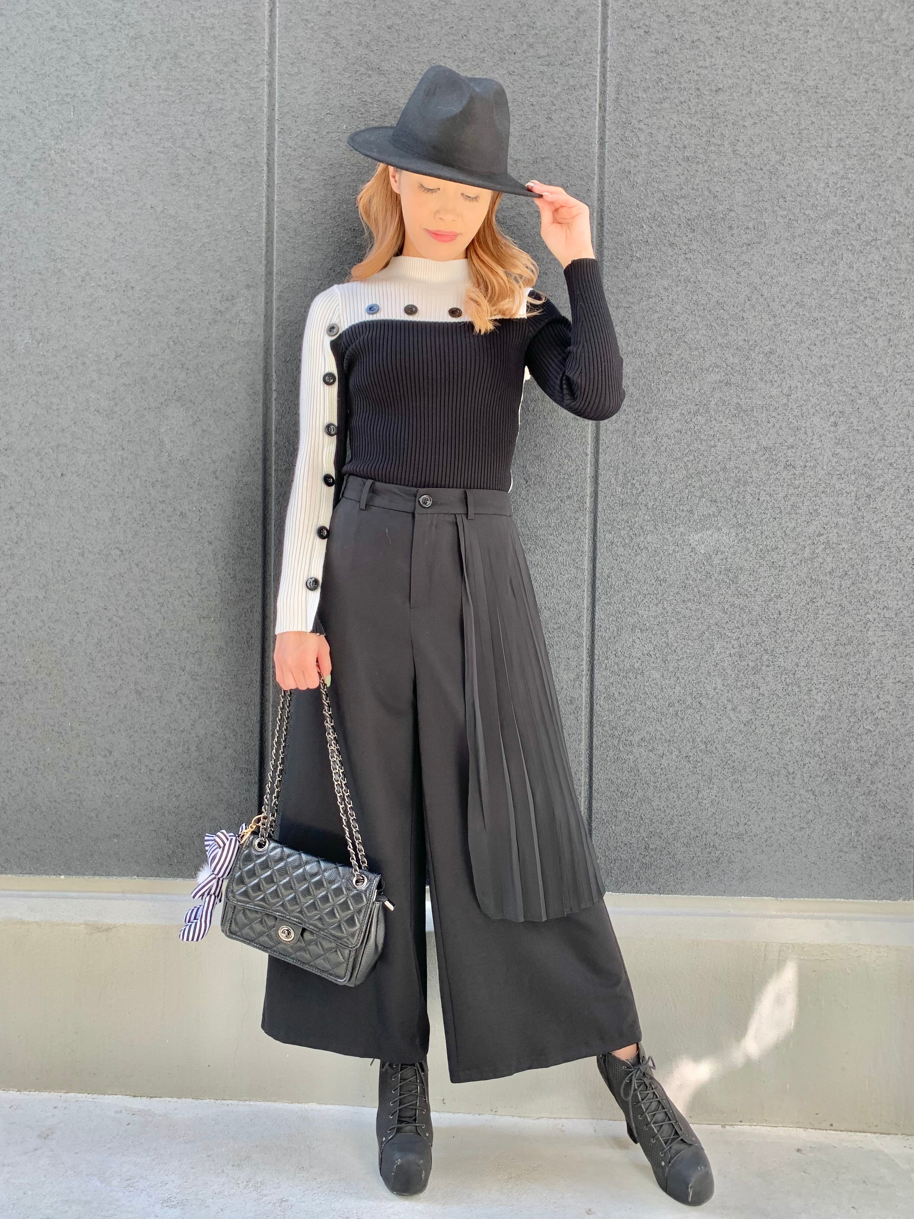 pleats lap wide pants パンツ ワイドパンツ プリーツ アシンメトリー デザインパンツ