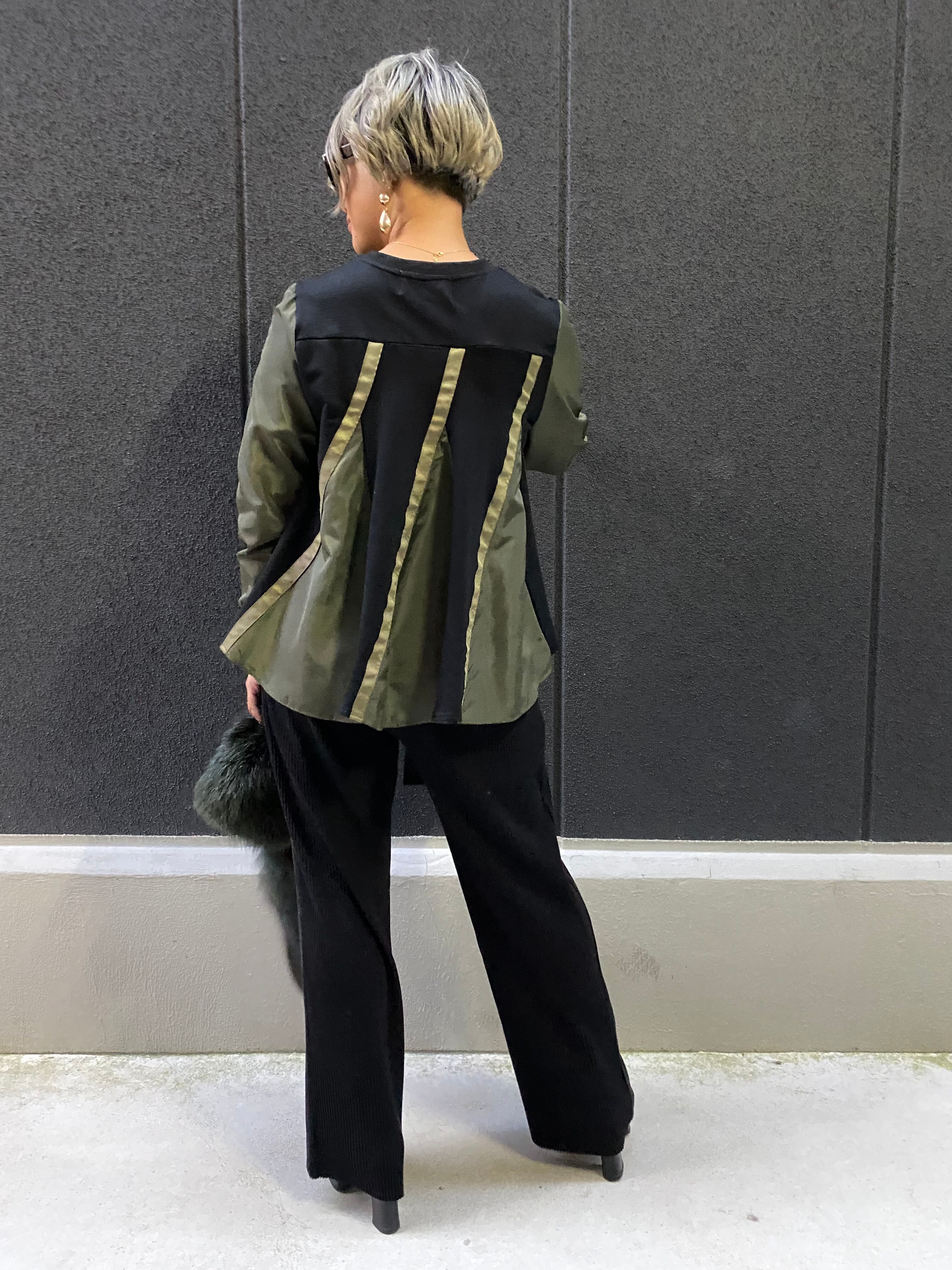 different fabrics mix flare back pullover tops トップス プルオーバー 異素材 テープ