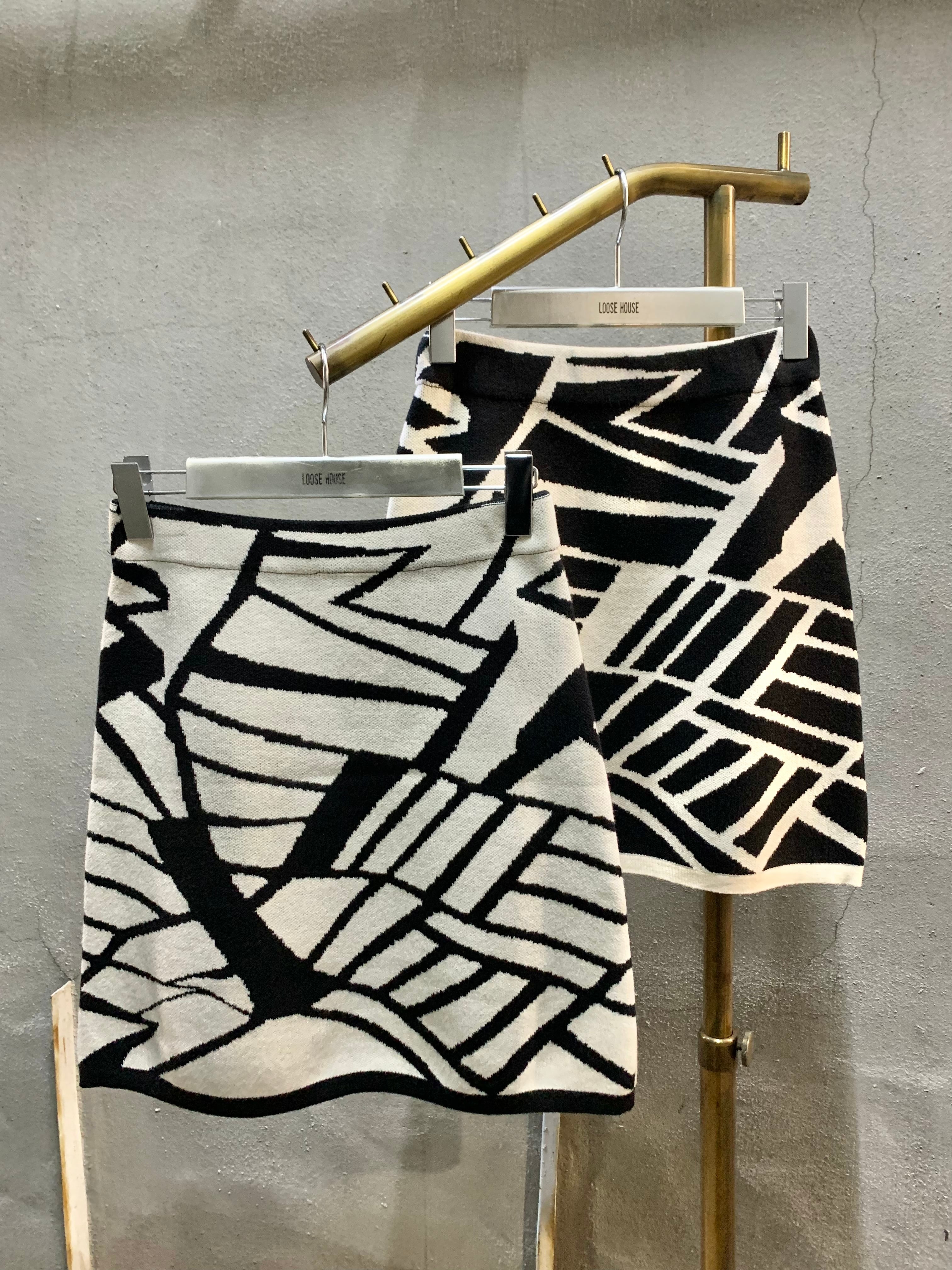 geometric pattern jacquard knit skirt スカート ニット ジャガード ジオメトリック