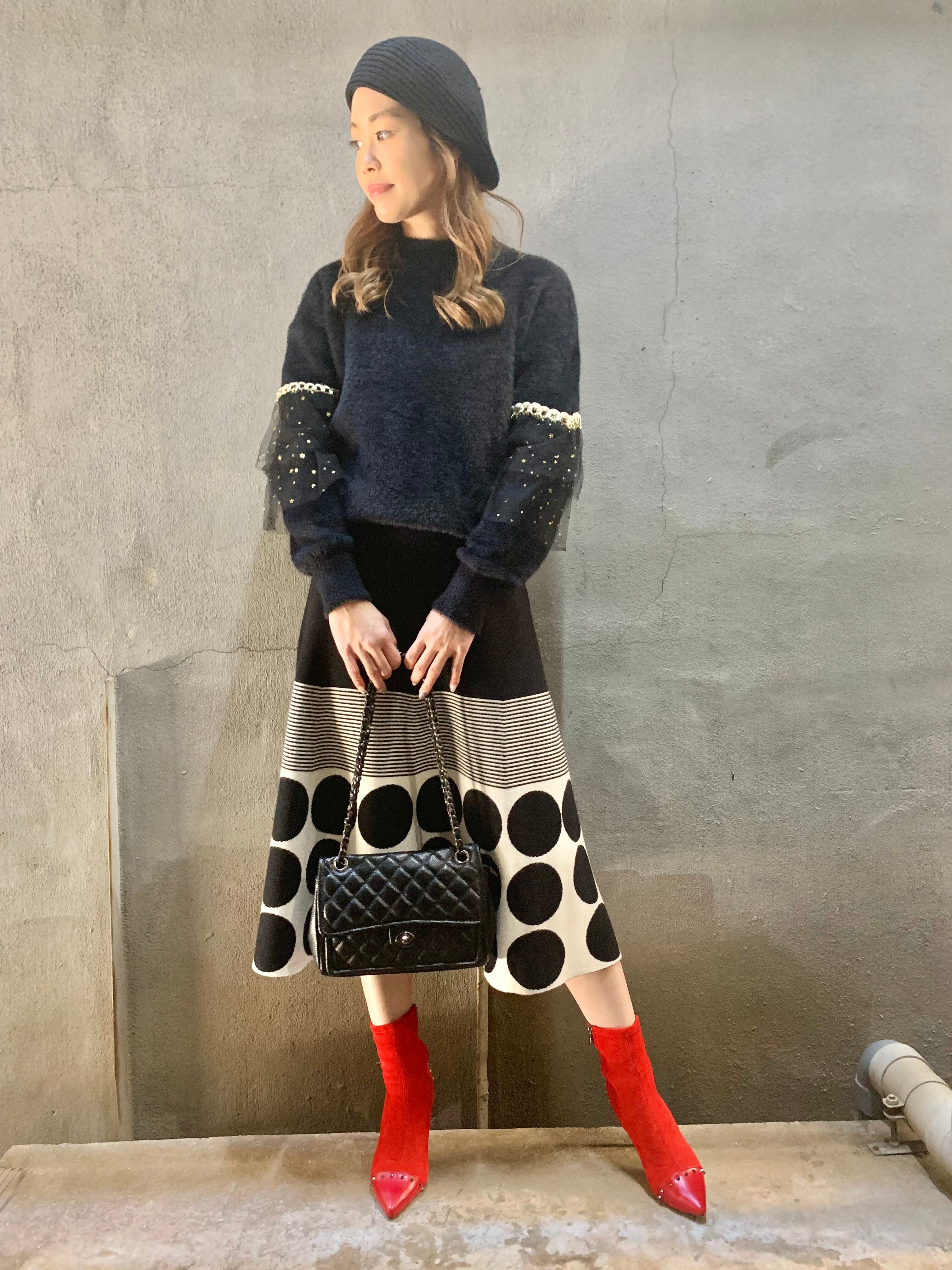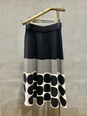 dot × border knit flare skirt スカート フレアスカート ニット 柄スカート ドット モノトーン バイカラー