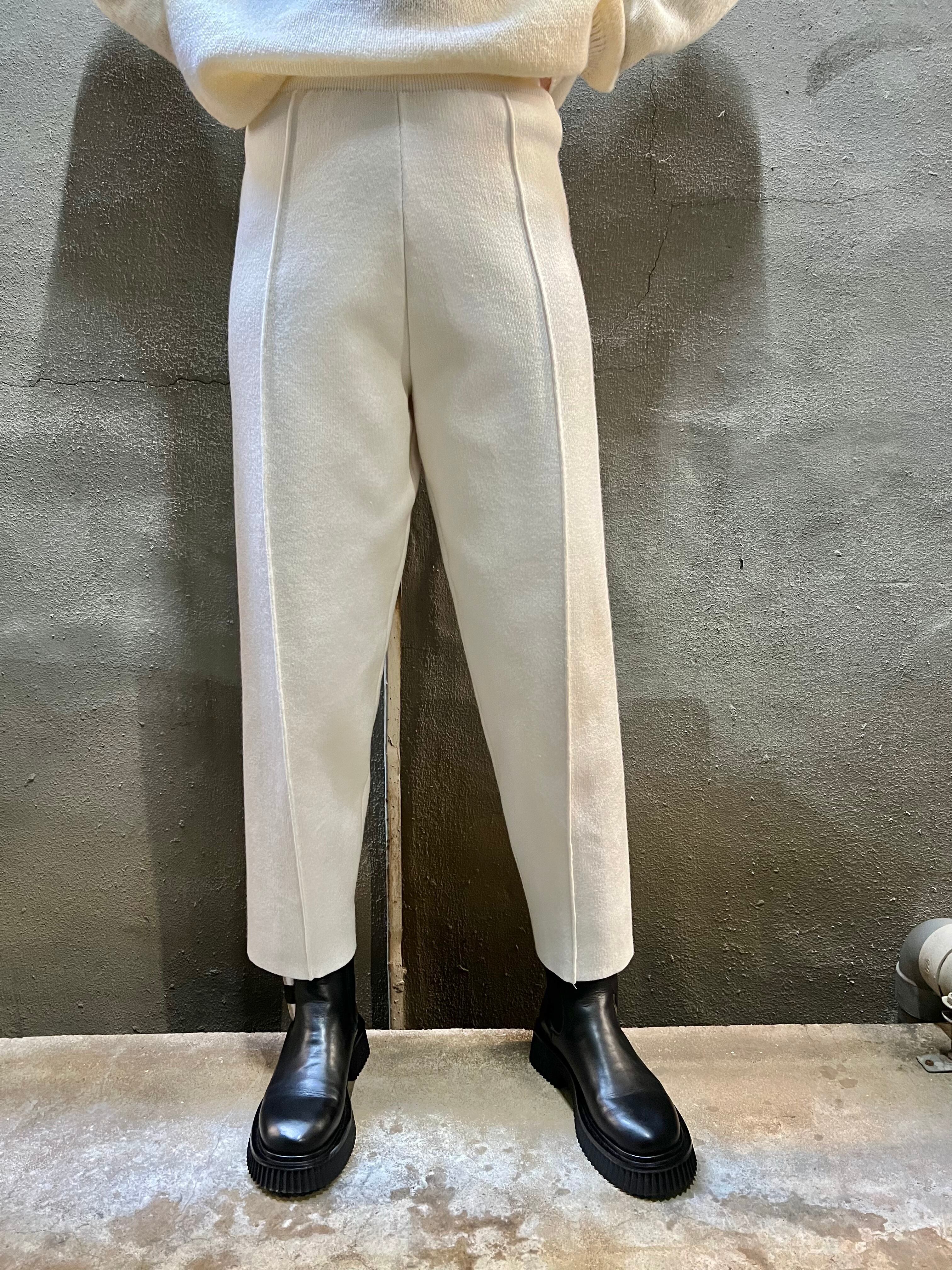 solid knit high-waist long pants ニット パンツ ロングパンツ ハイウエスト 楽ちん あったかい 着心地