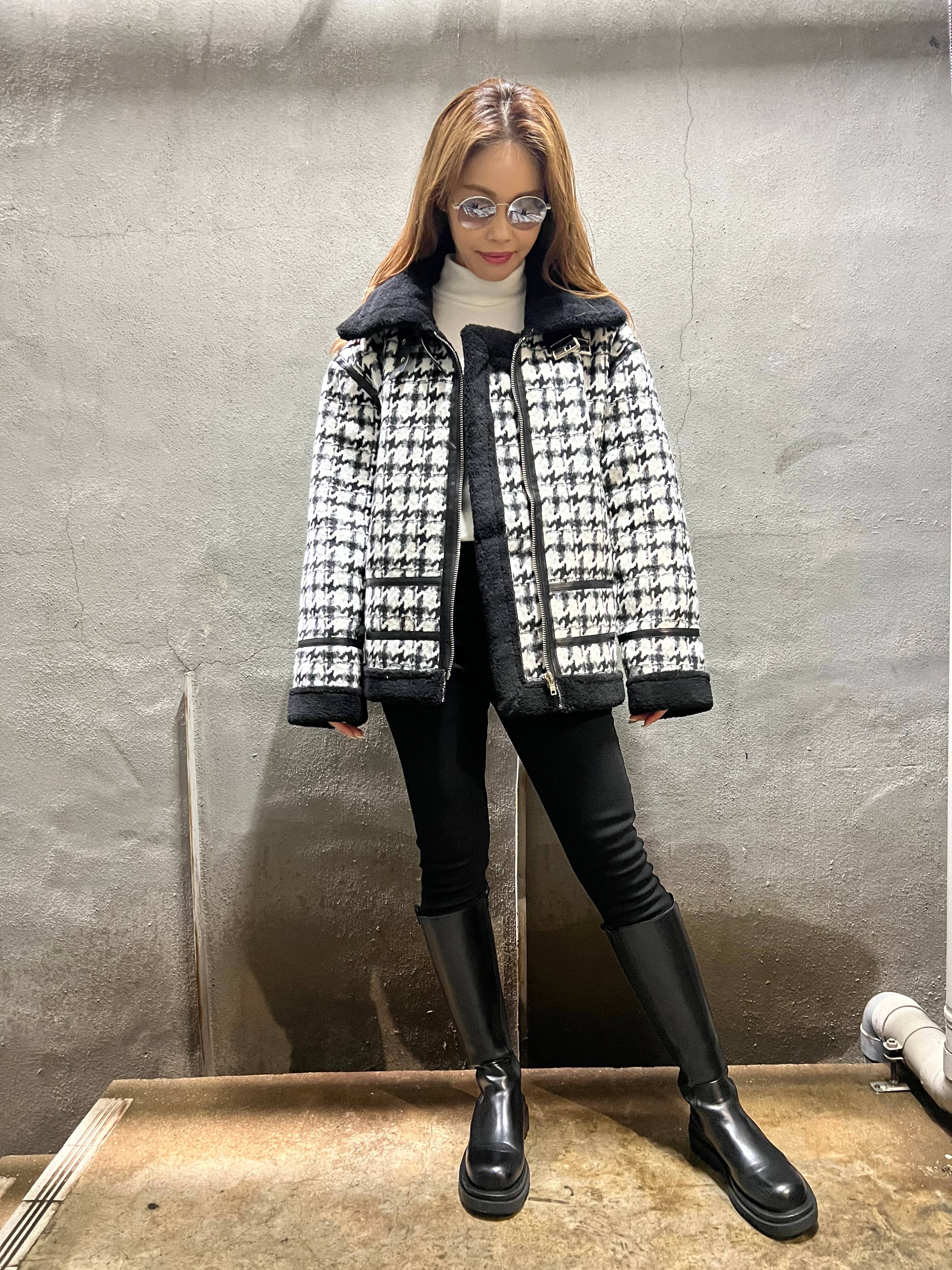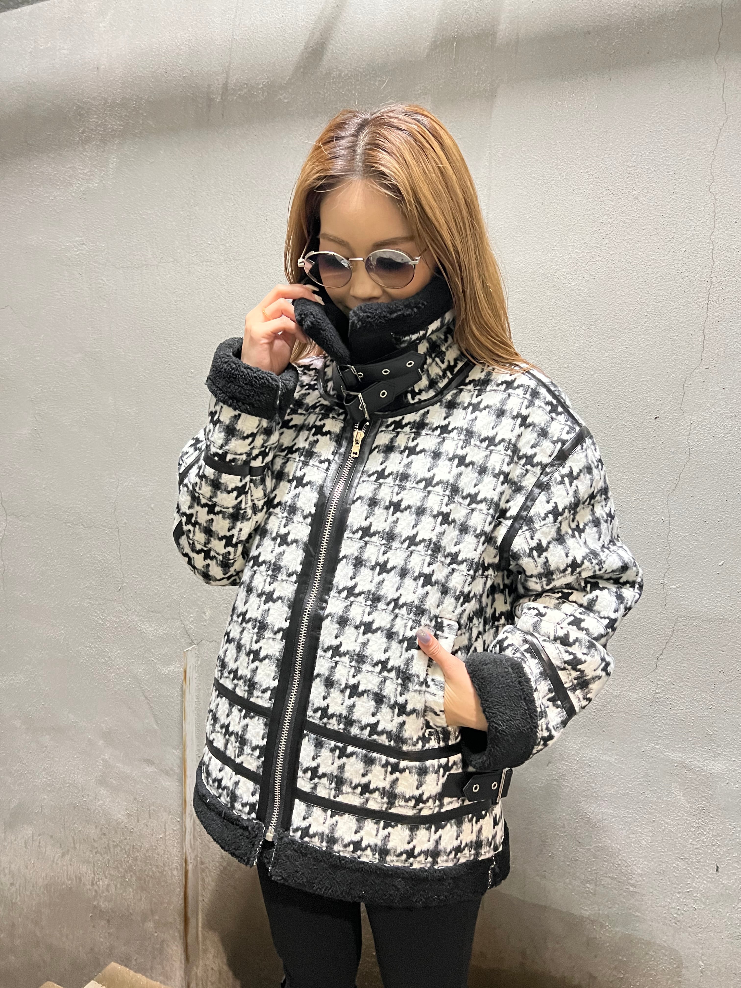houndstooth pattern ・boa buckle design jacket ジャケット 千鳥格子 ボア バックル デザインジャケット チェック