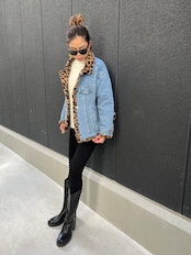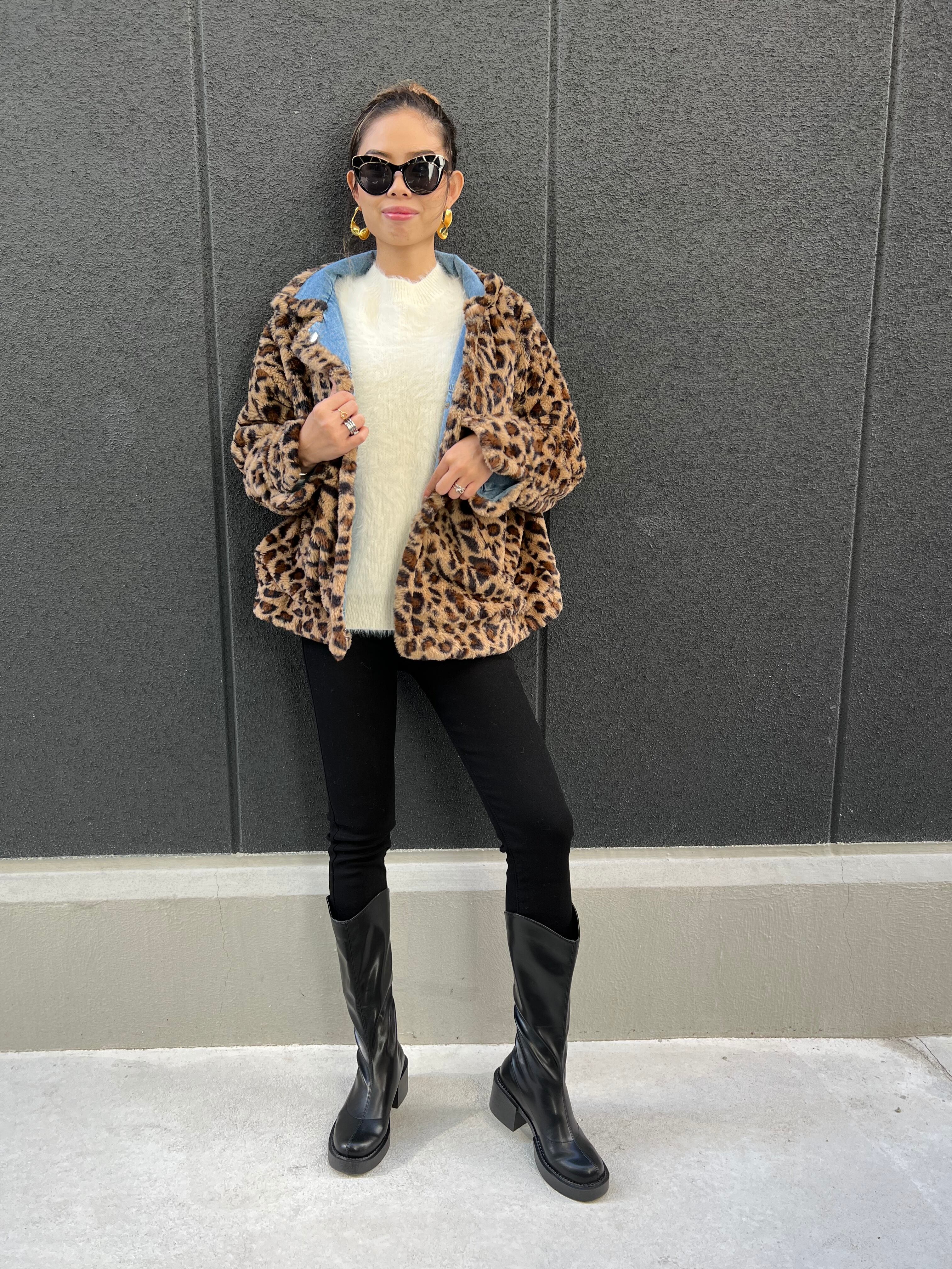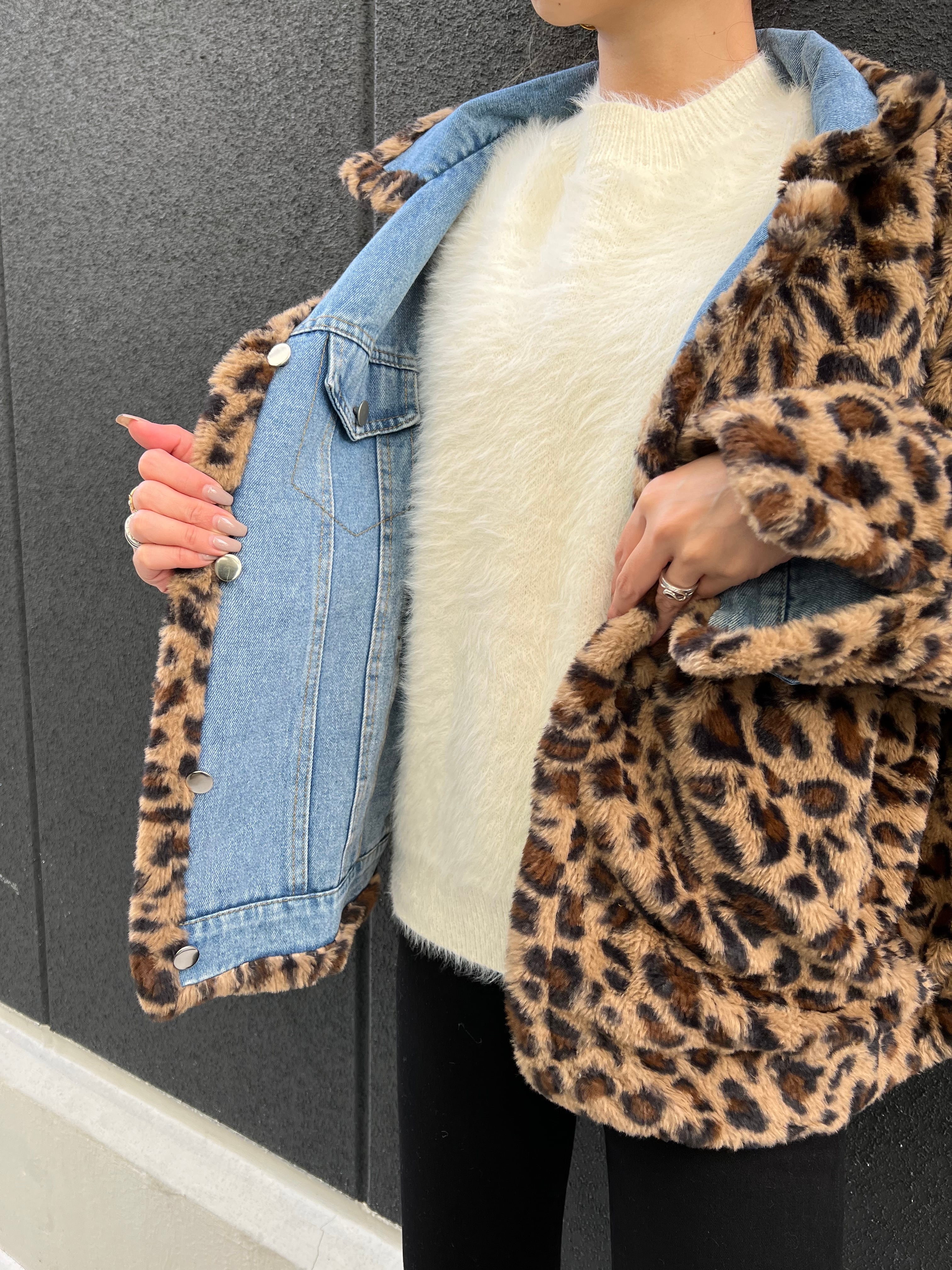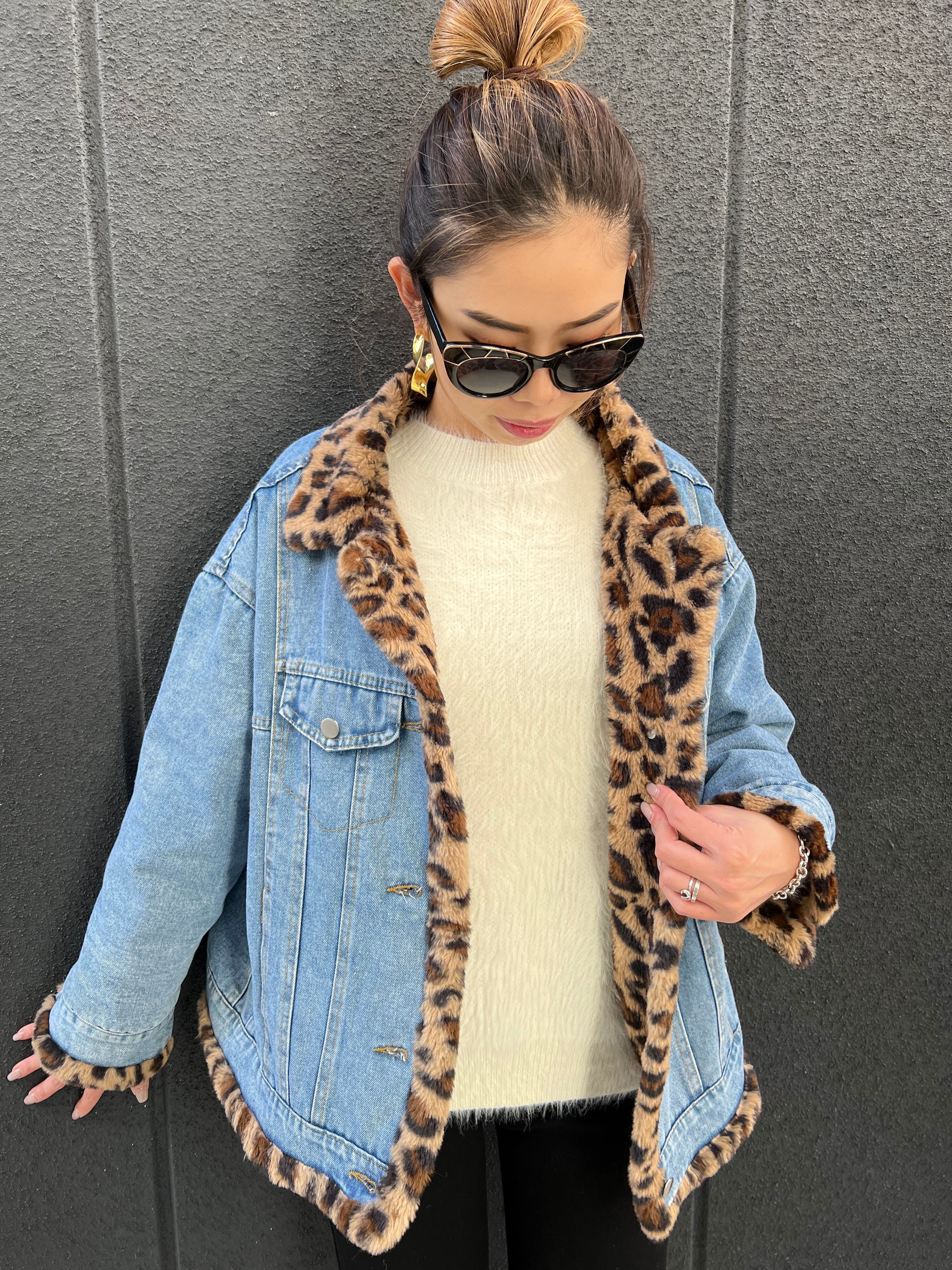 reversible leopard × denim jacket ジャケット デニム レオパード フェイクファー リバーシブル Wフェイス