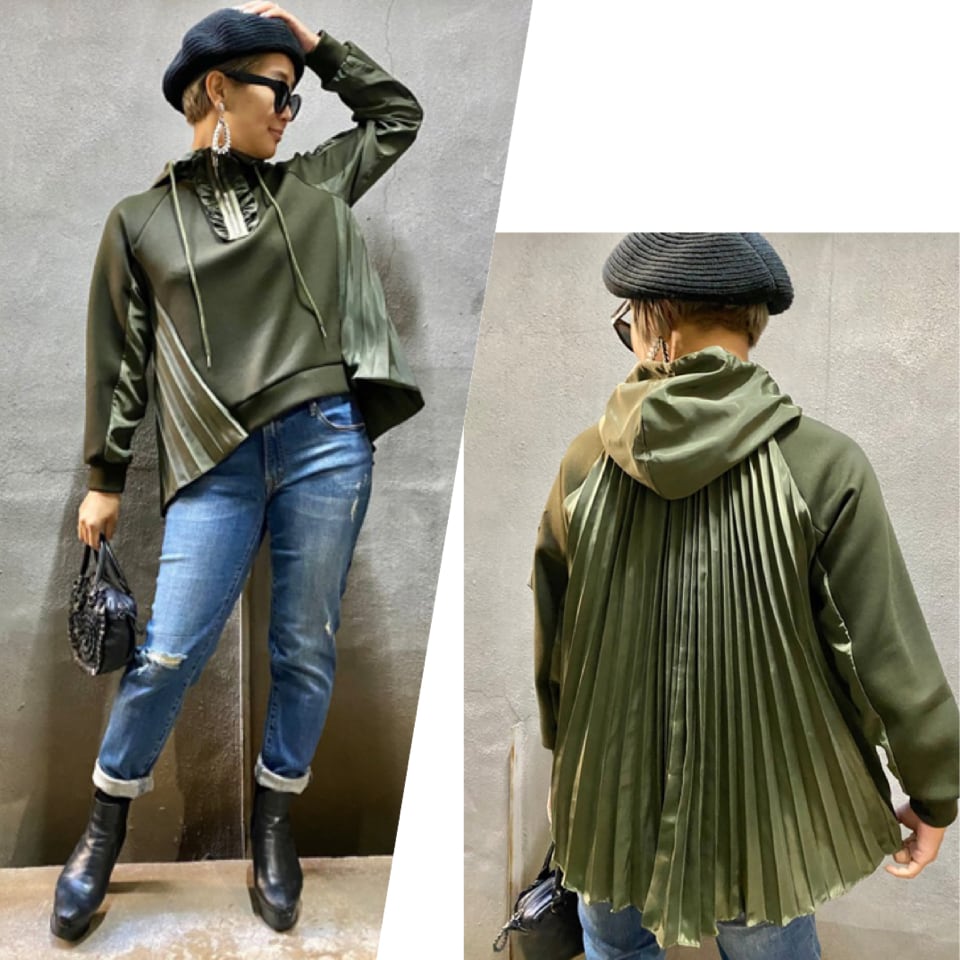 different fabrics zip frill design hoodie tops トップス デザイントップス プリーツ フーディー フリル