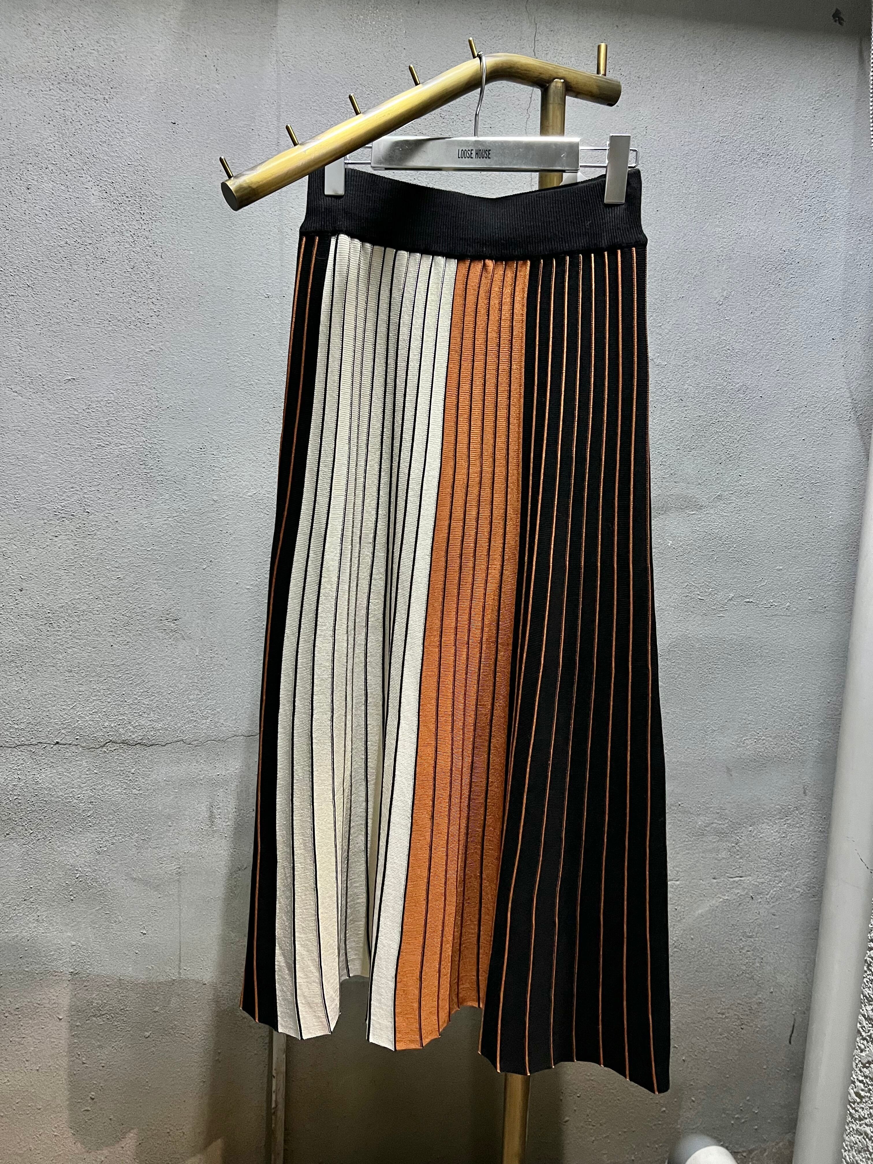 color stripe pleats knit skirt ニット スカート プリーツスカート 配色