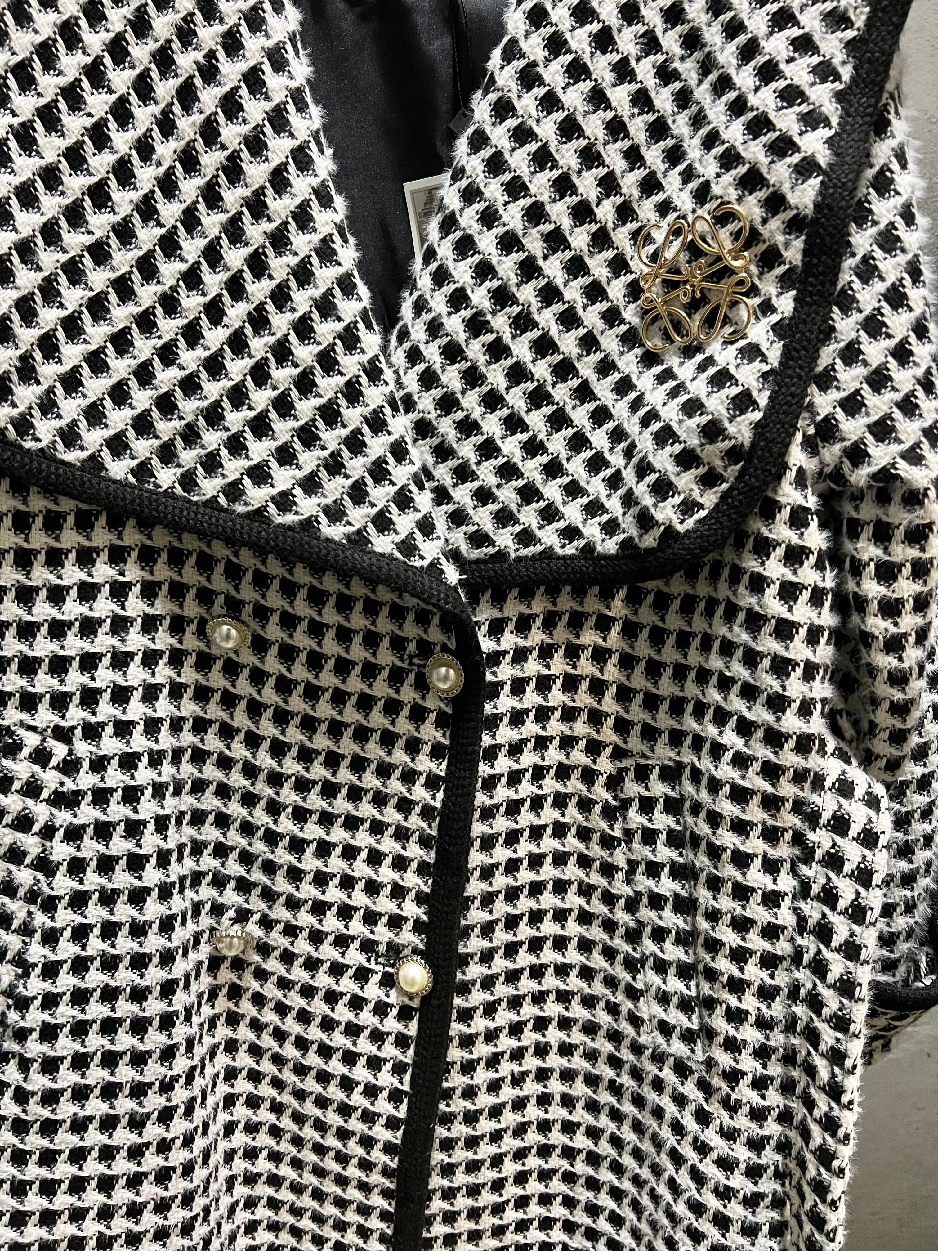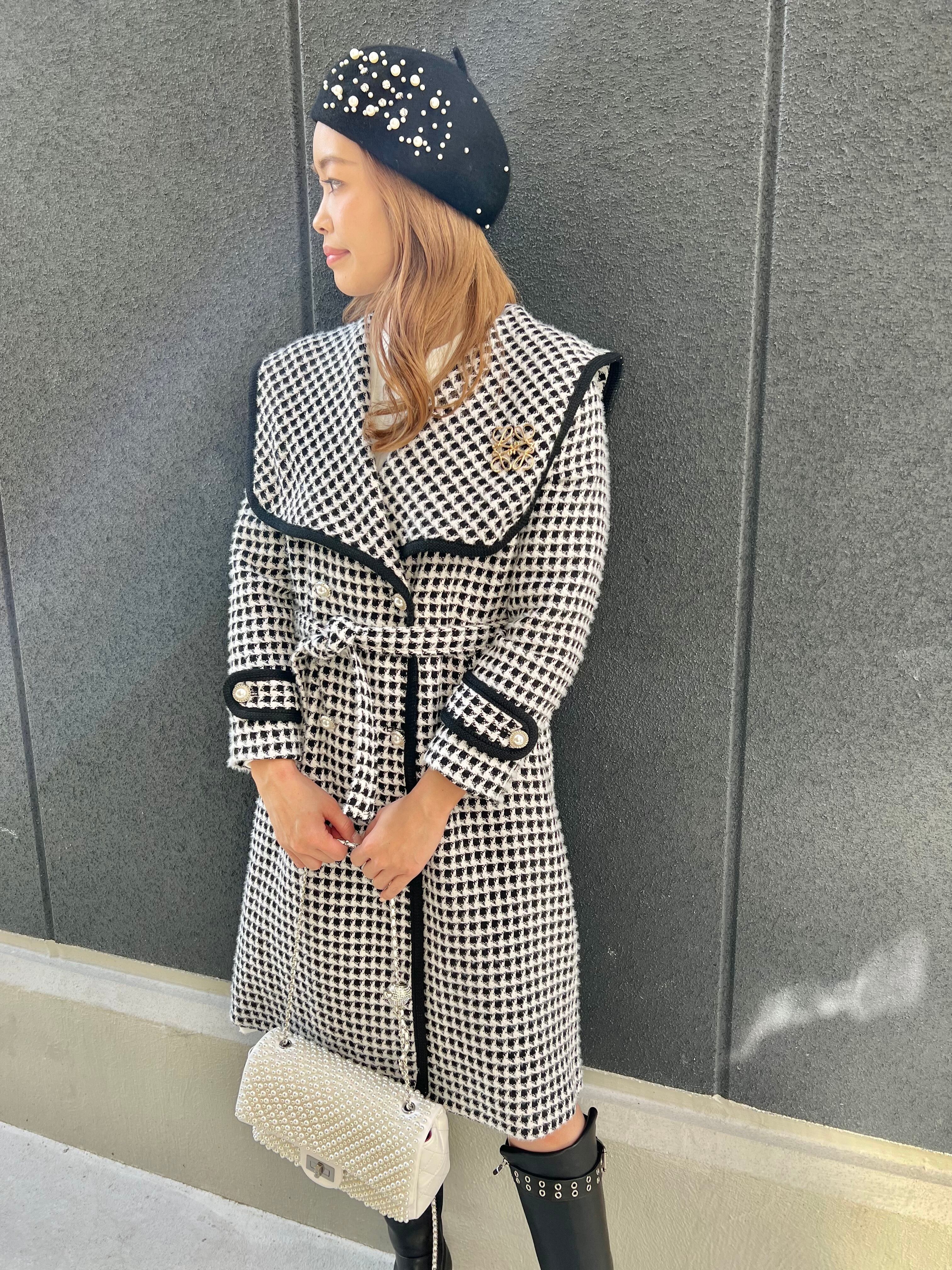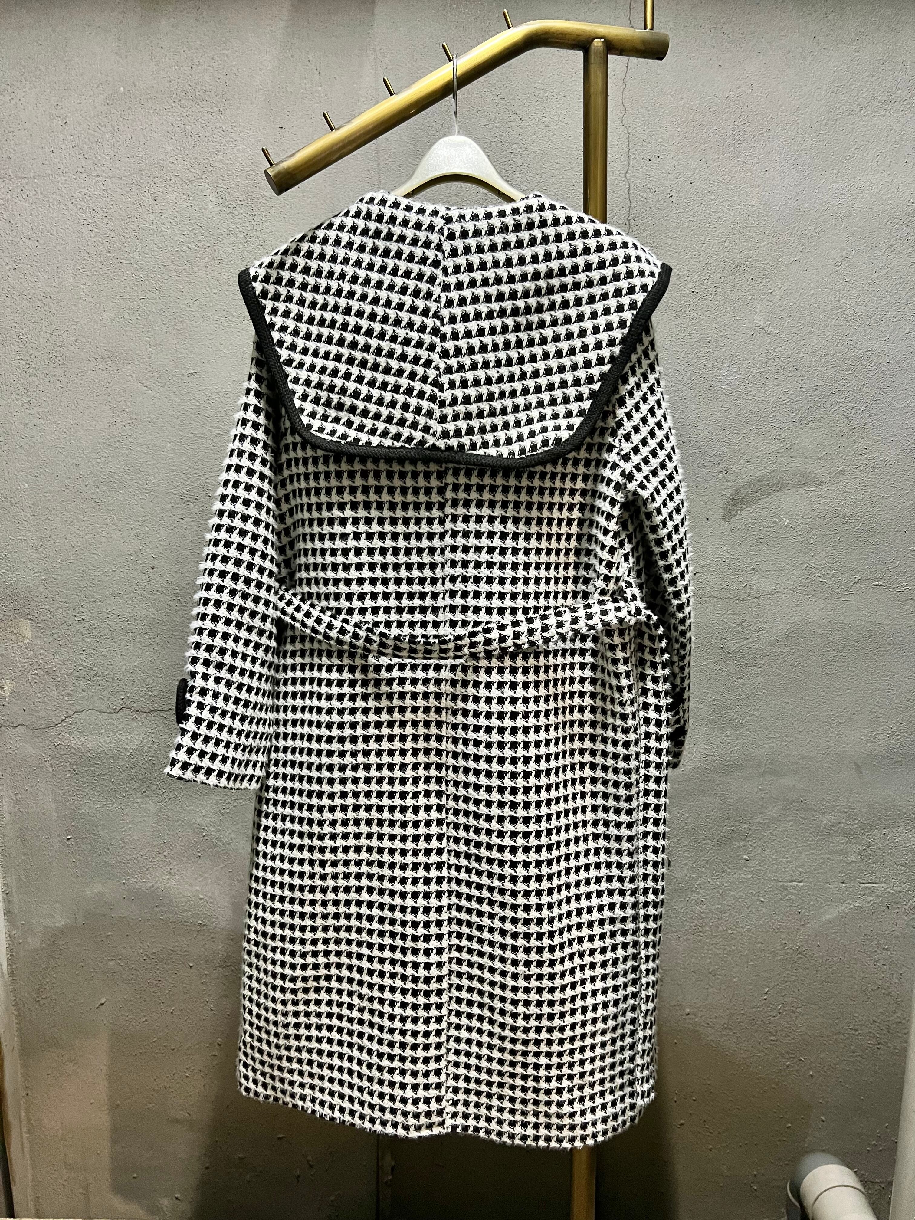 houndstooth check pattern big collar coat コート 千鳥 チェック 襟 大きめ襟 ブローチ付き