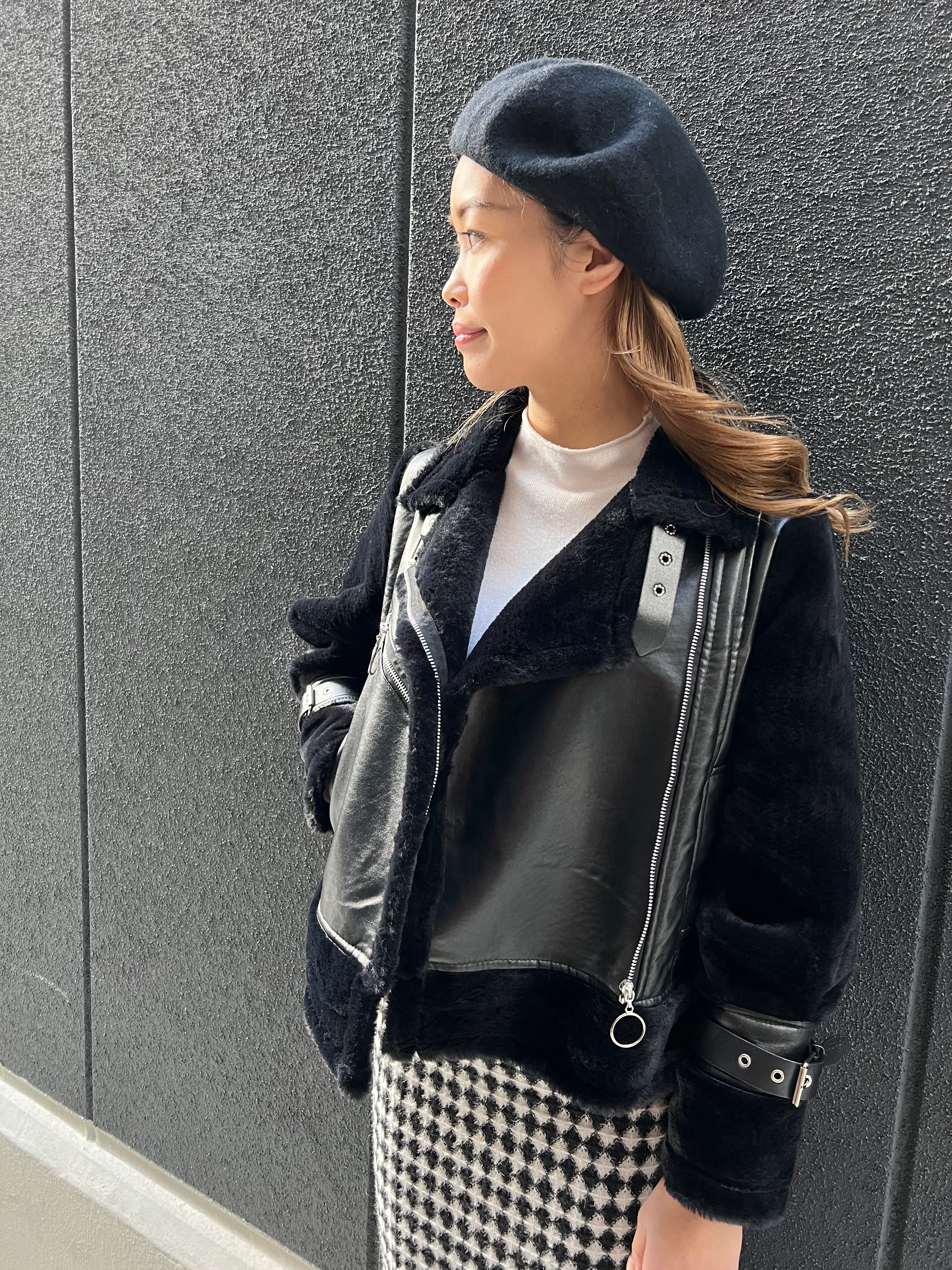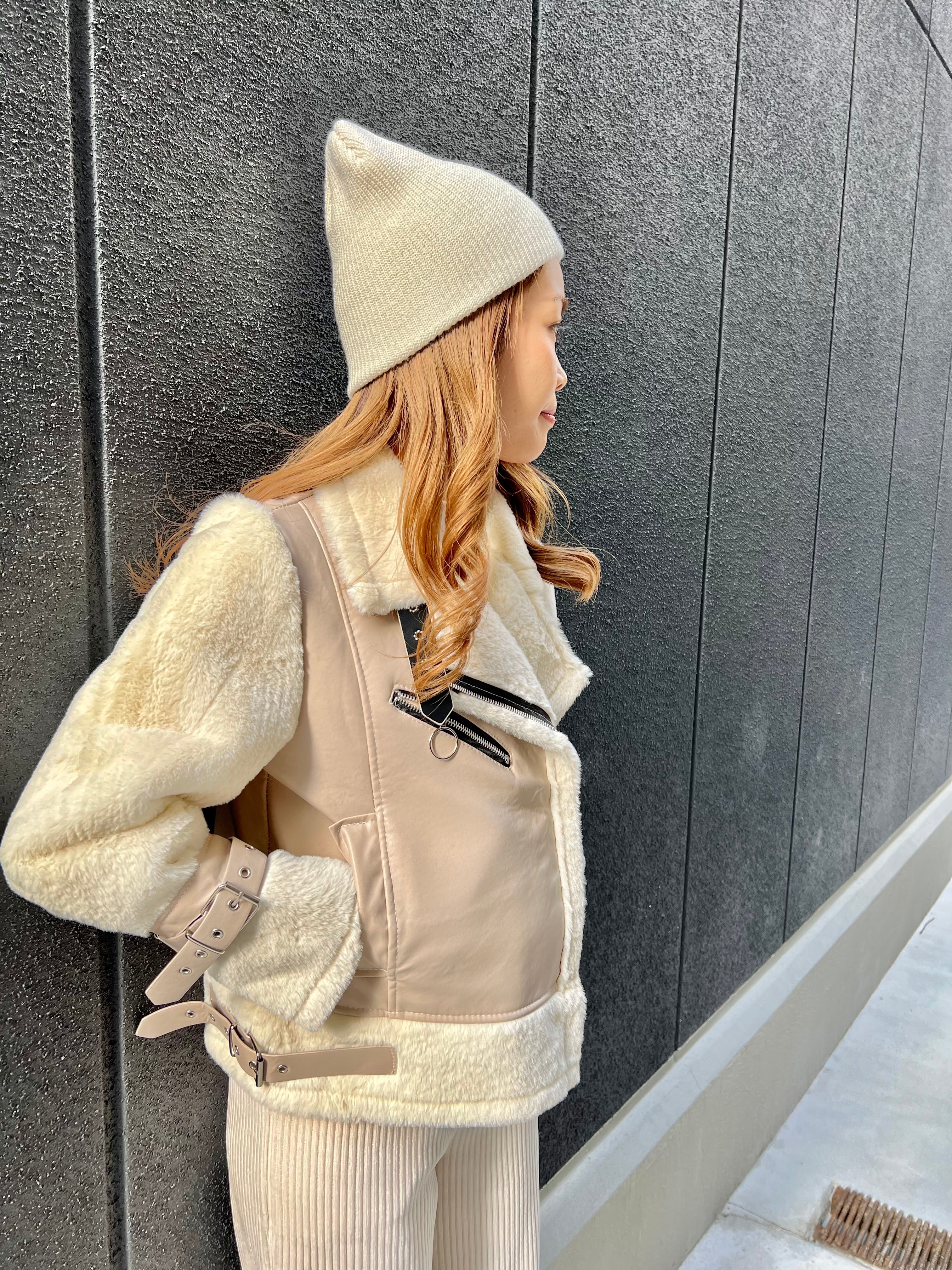 fake mouton × eco leather riders jacket ジャケット ライダース ムートン レザー フェイクムートン フェイクレザー