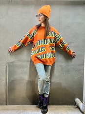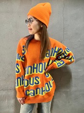 jacquard knit text sweater ニット セーター テキスト 柄ニット ジャガード カラフル 厚手