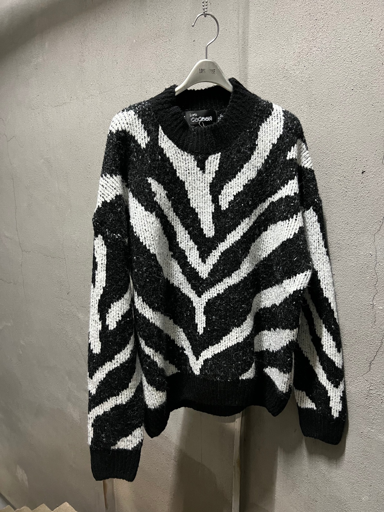 zebra jacquard knit sweater ニット セーター ゼブラ アニマル バイカラー 白黒