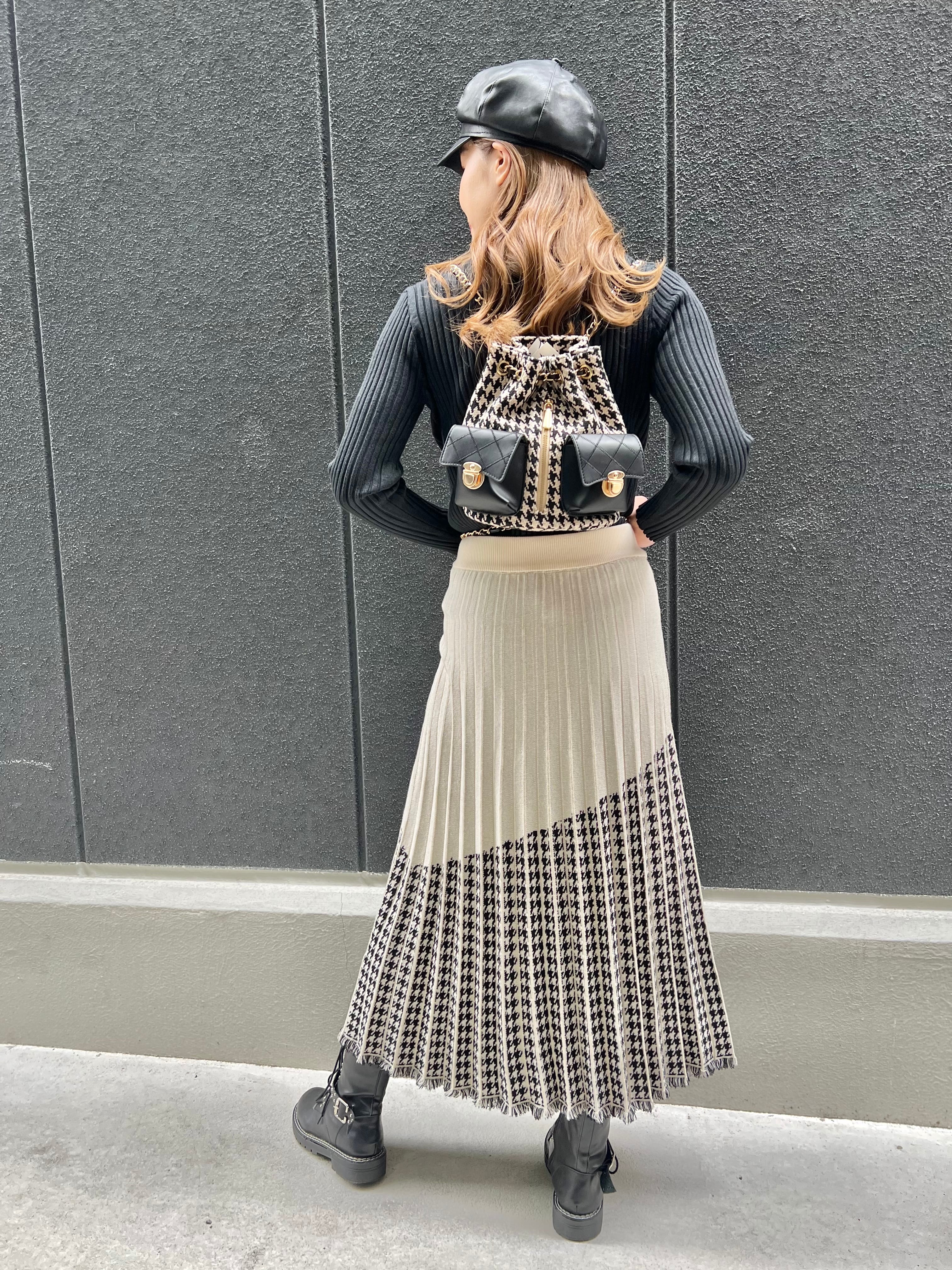 houndstooth pattern change pleats knit skirt スカート ニット ニットスカート プリーツ 千鳥格子